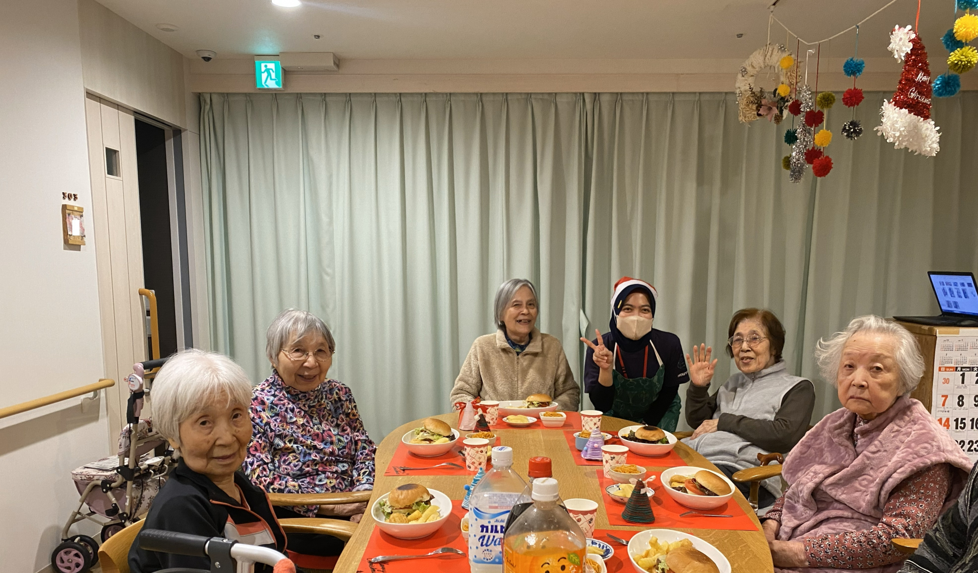 ハンバーガーが完成すると、みなさんでテーブルを囲み、クリスマスパーティーを楽しみました。