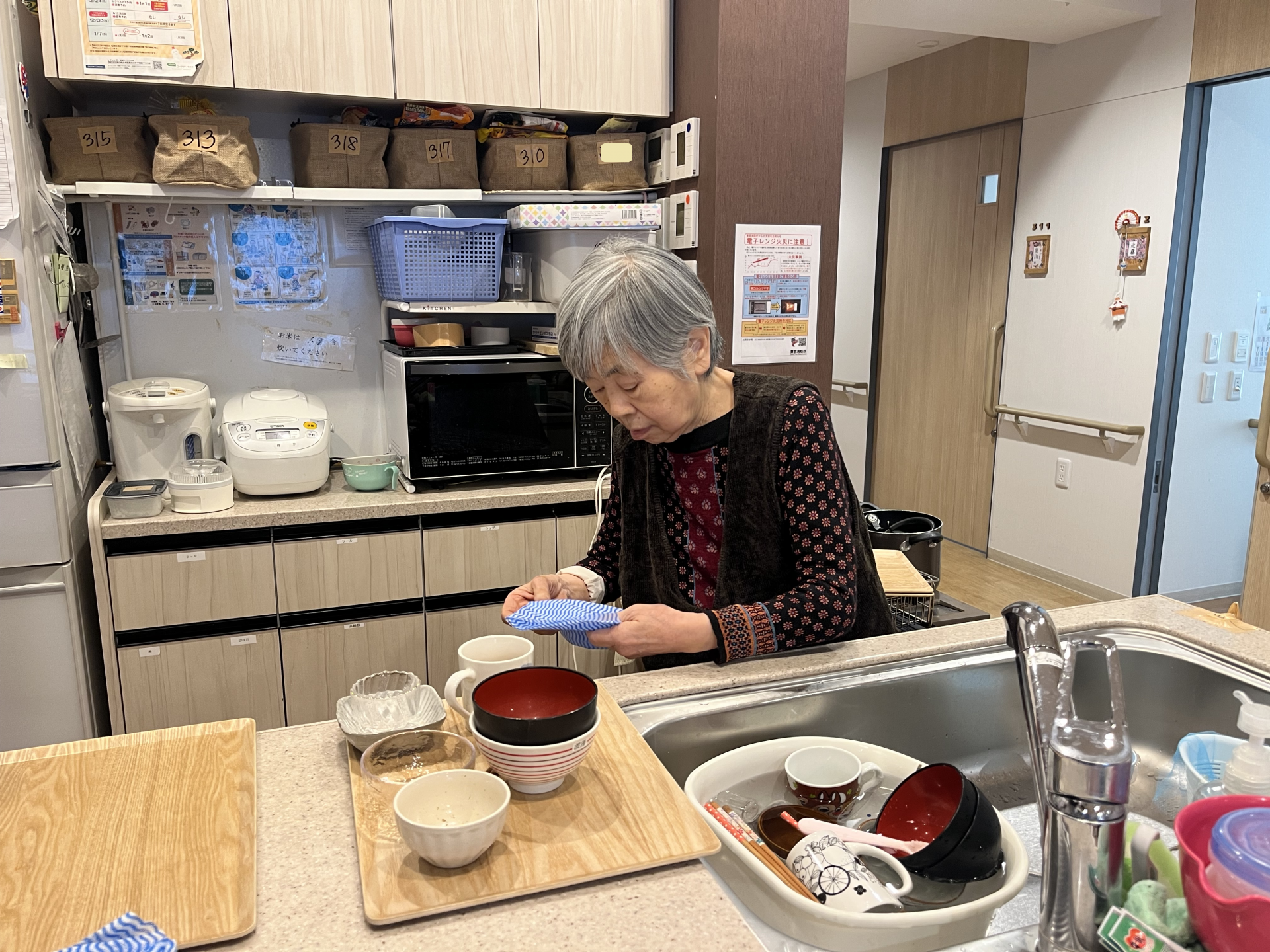 食事の後は下げ膳出来る方は下げ膳をします。。