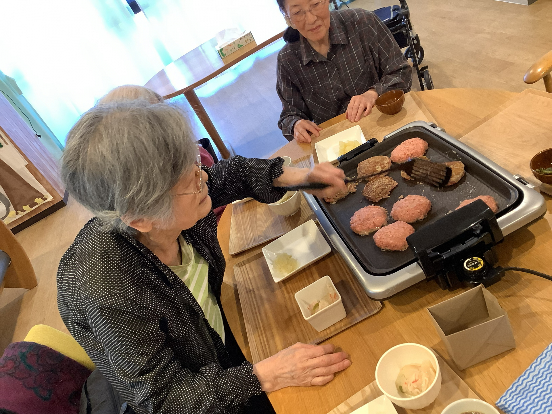 皆さんと作ったハンバーグは美味でございます(#^^#) 小日向GH 秋羽