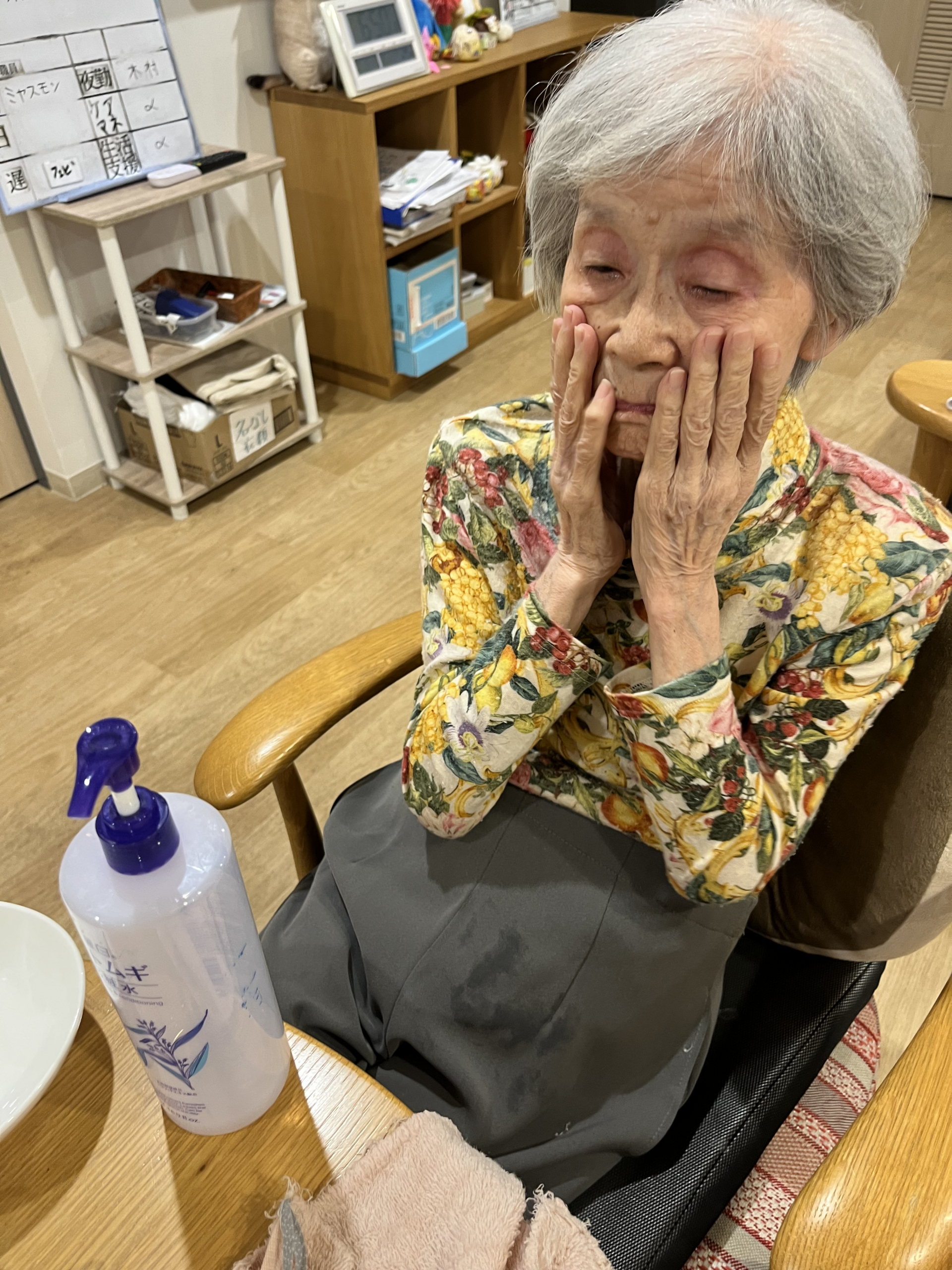 K様も温かいタオルを使い顔拭きから始まります♬