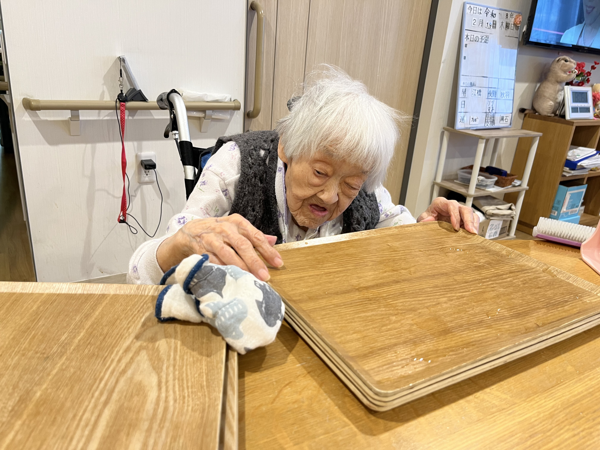 Ⅿ様もトレー拭きを手伝ってくれてます。。