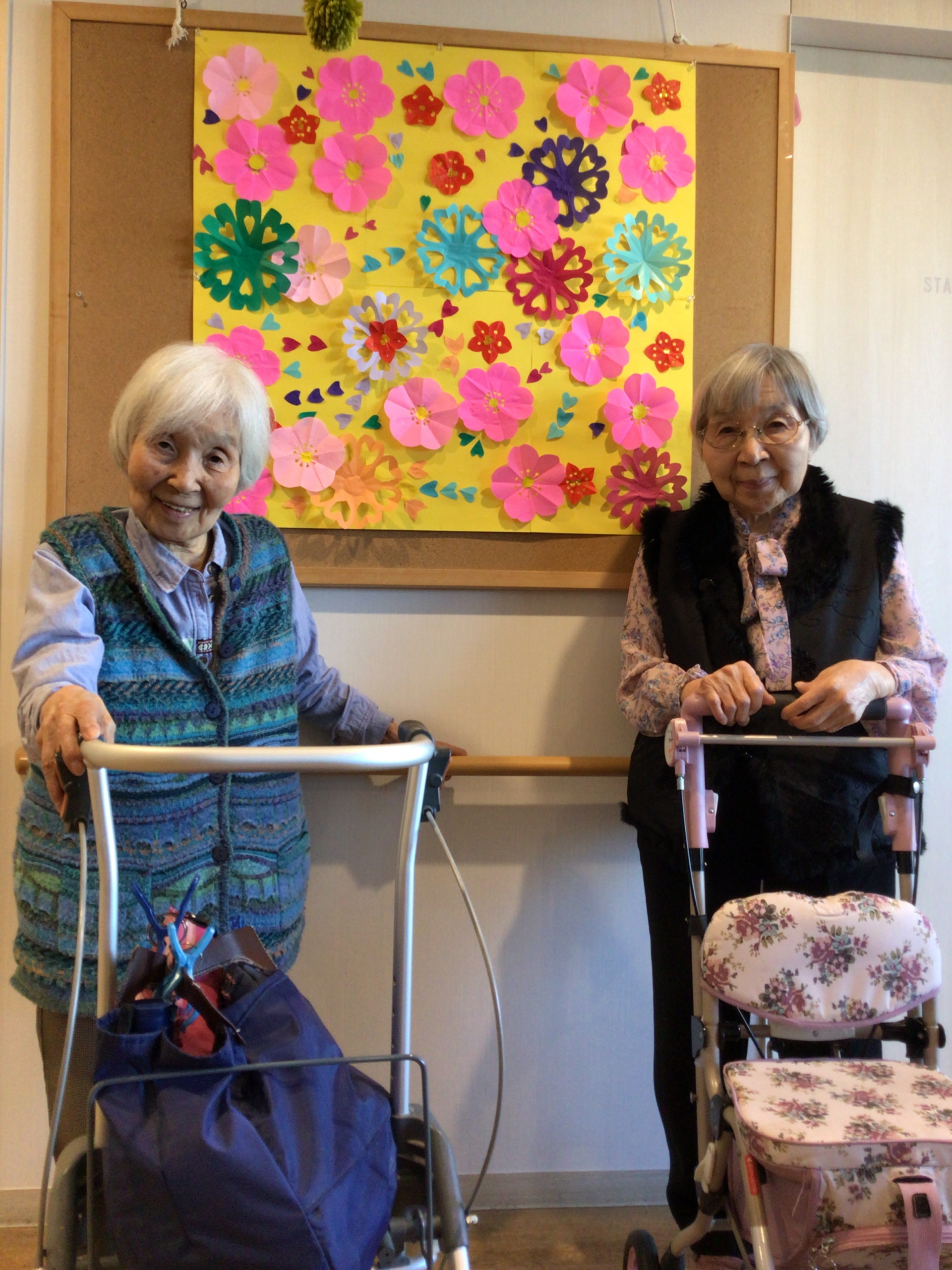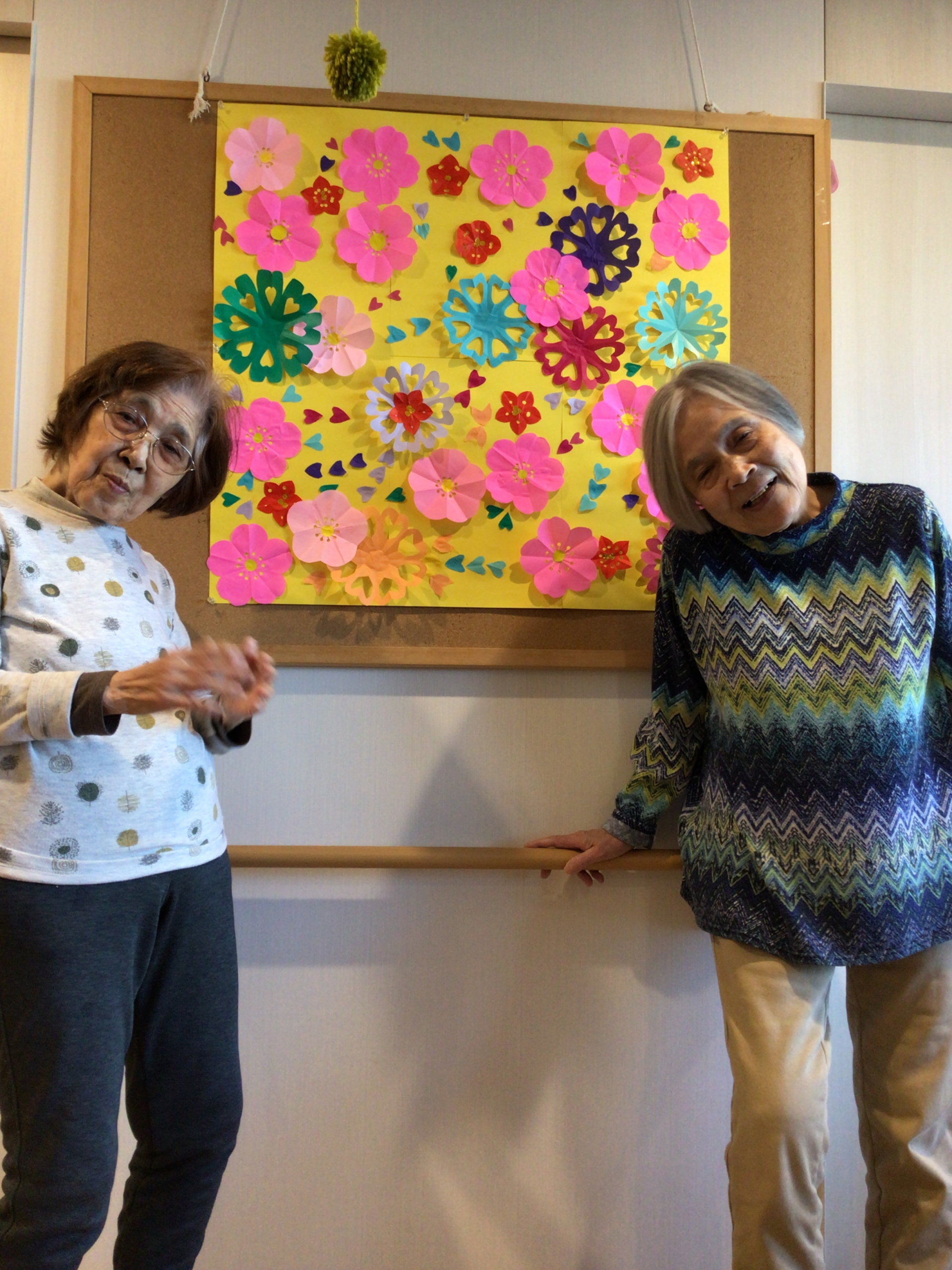 みんなで切り貼りした色とりどりのお花!
