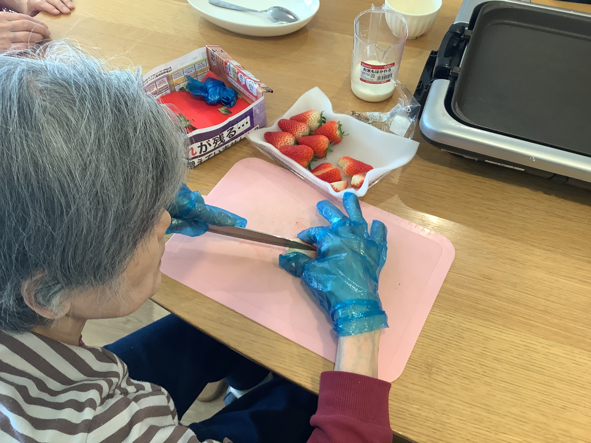トッピング用の苺をカット♬