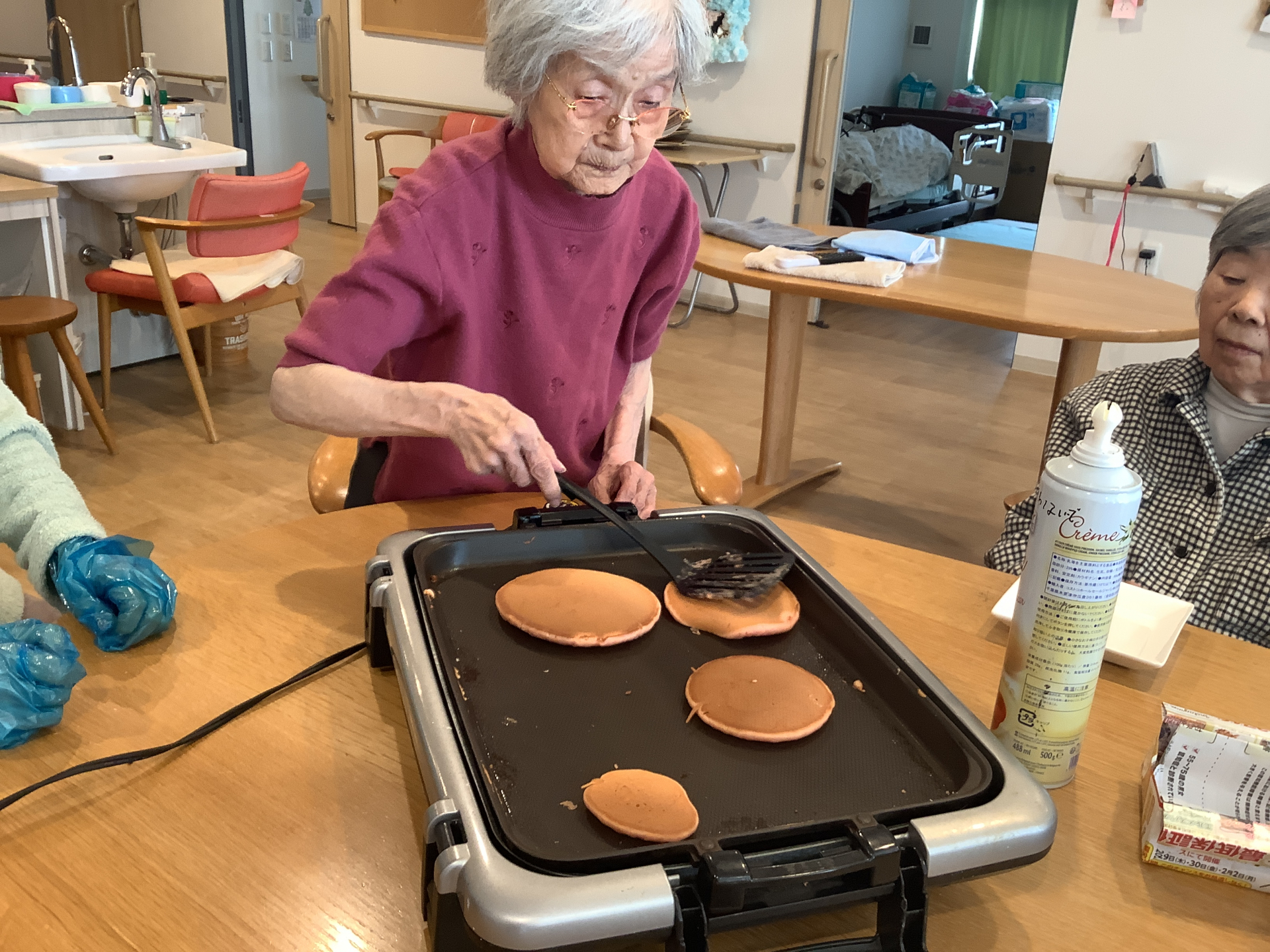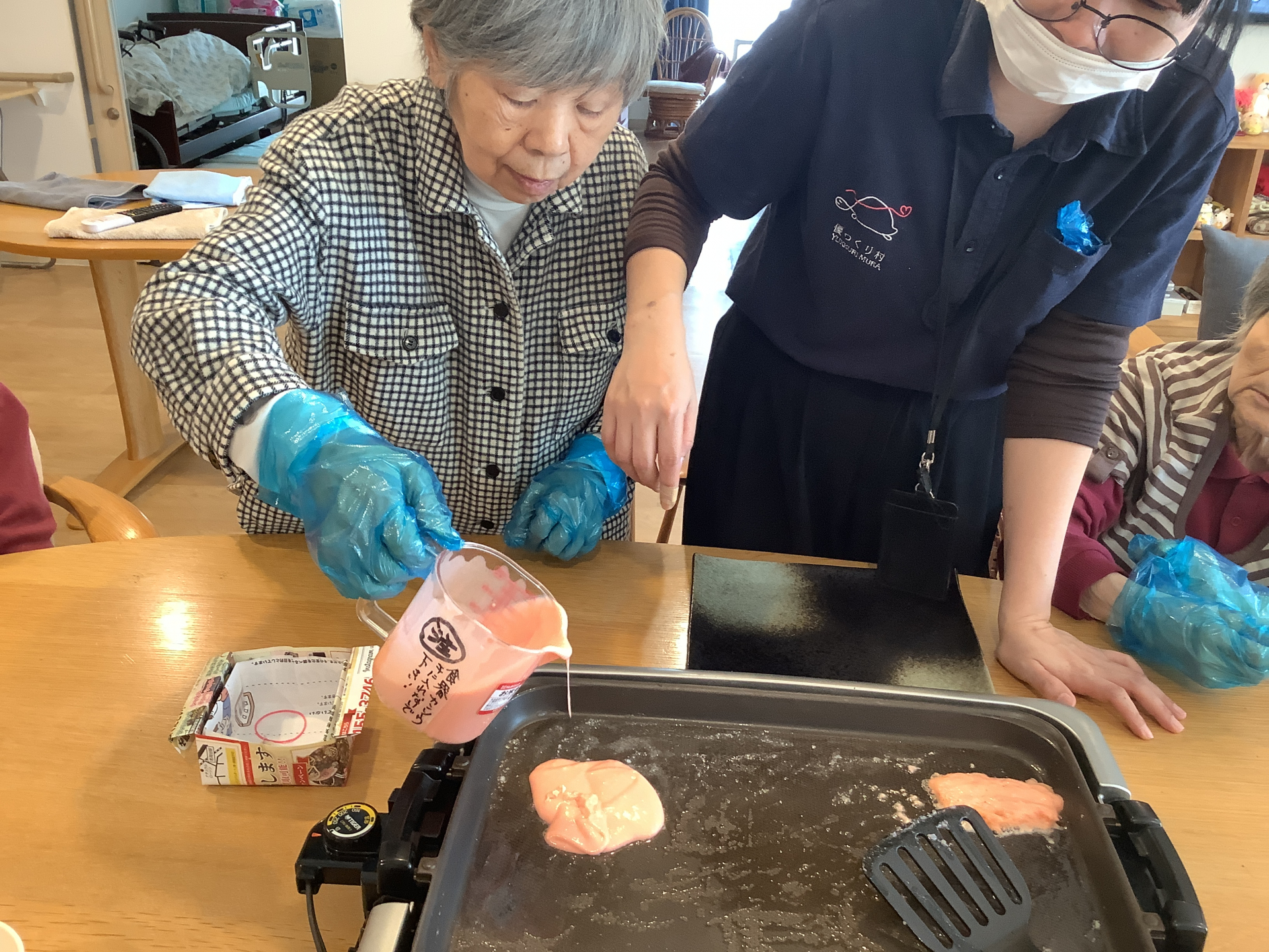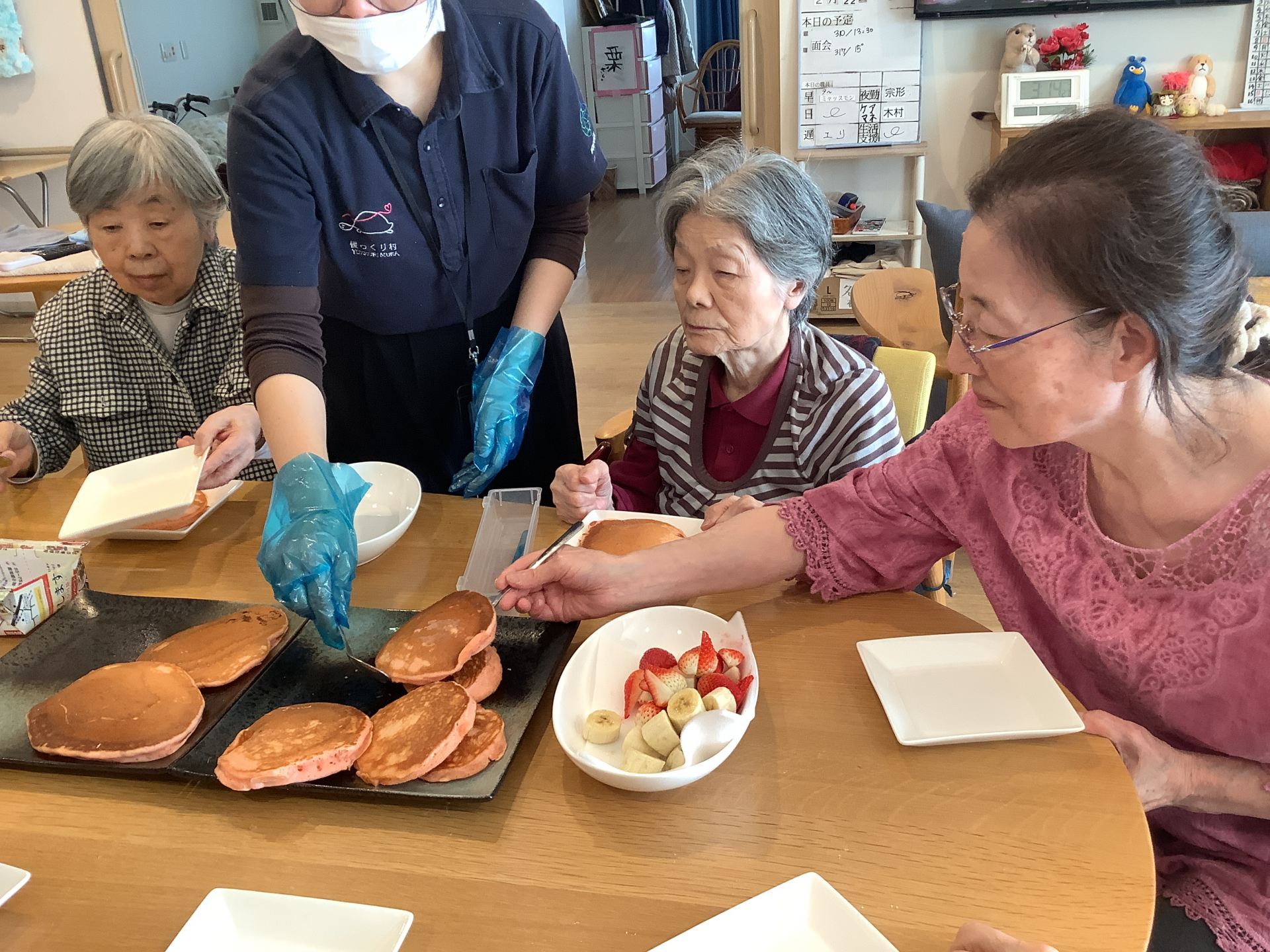 焼き終わったら好きなパンケーキを選びます♬