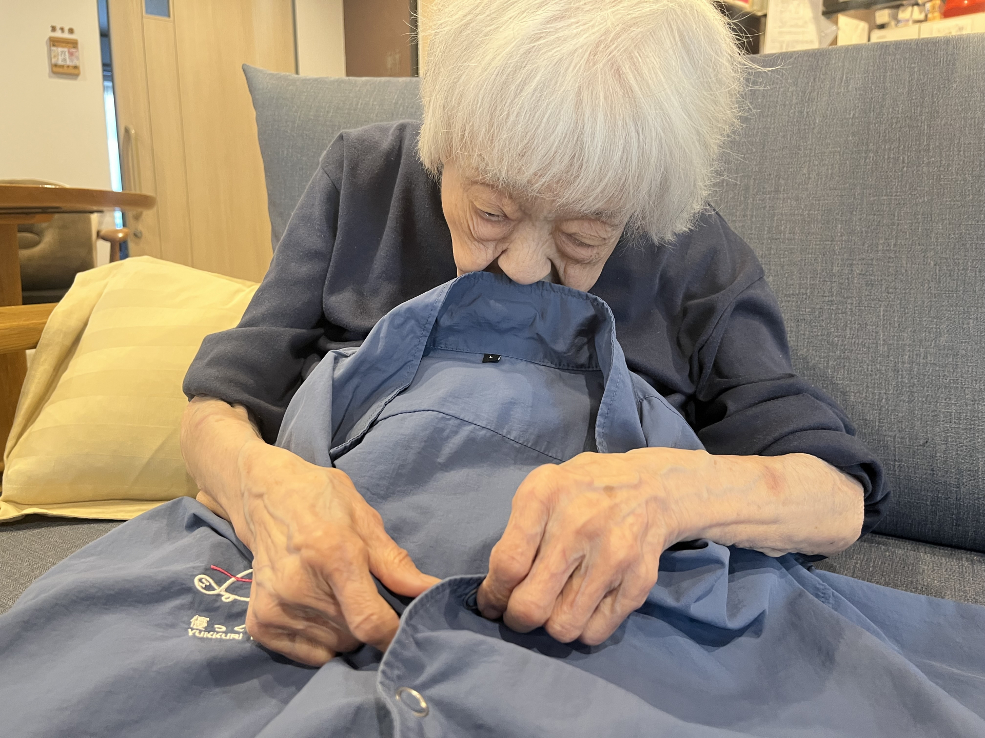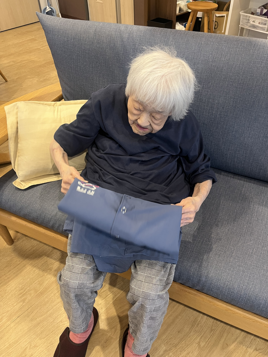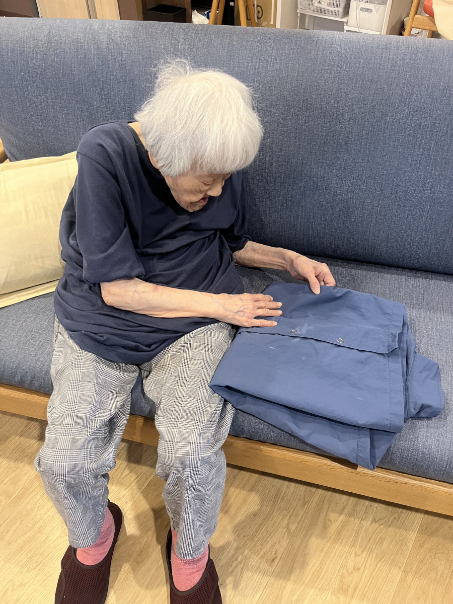ソファに座りながら洗濯物を畳んで下さってます