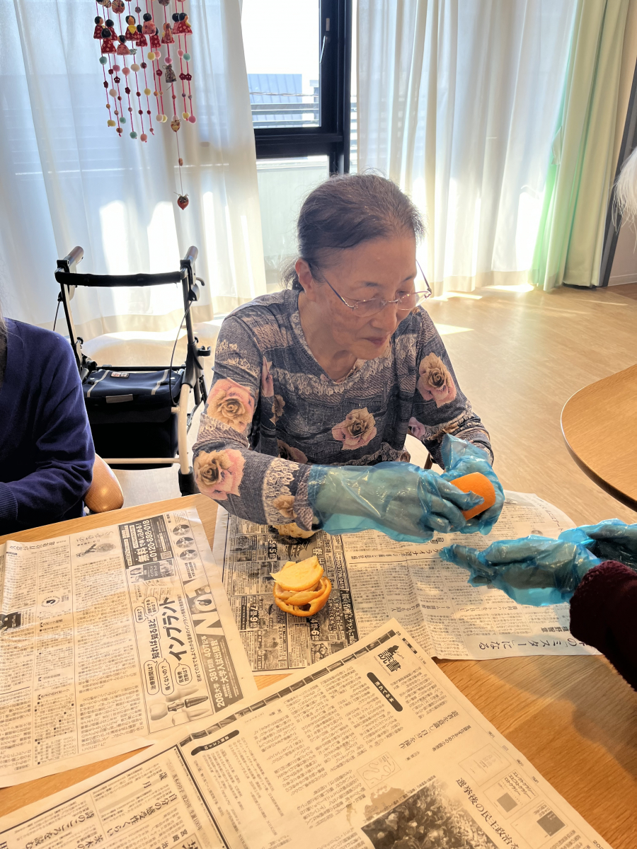 皆さんで協力して夏みかんを剥いていきましょう~~