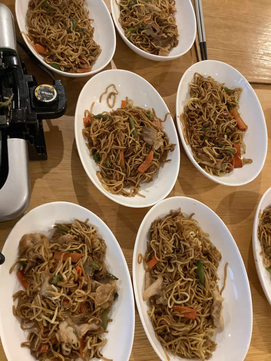 誘惑に打ち勝ち、一旦プレートからよけて、麺を蒸し焼きしました。