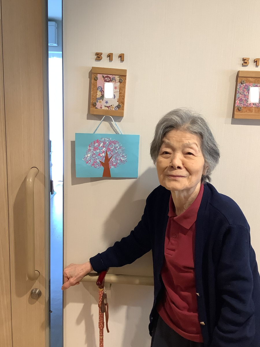 完成した桜の壁飾りを居室の表札に飾って行きましょう!
