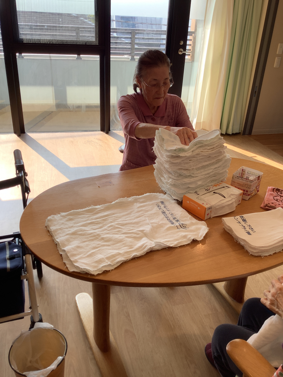 タオルを畳む事で手指の動きの活性化に繋がります!
