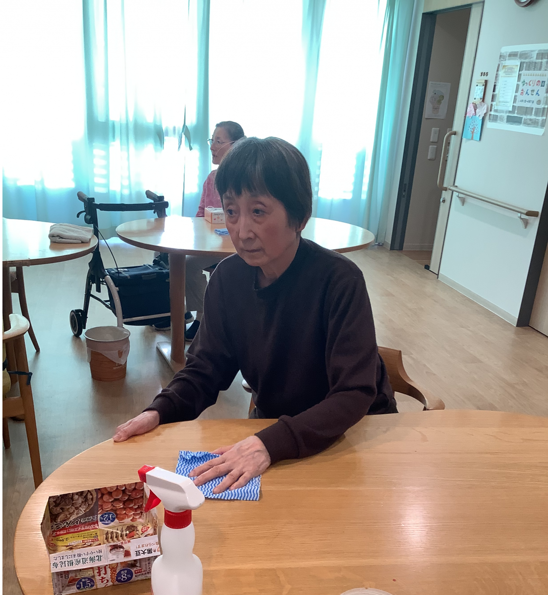 各テーブルを分担して拭いていきます