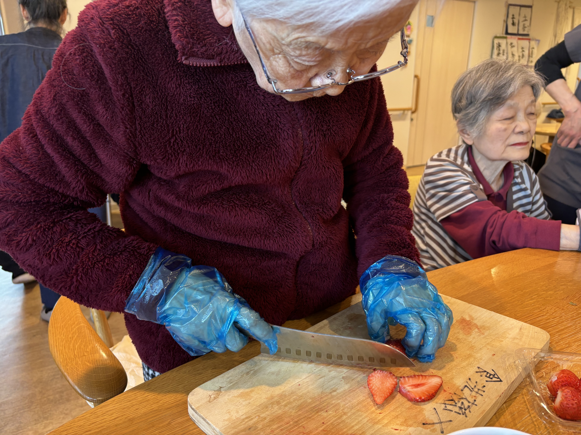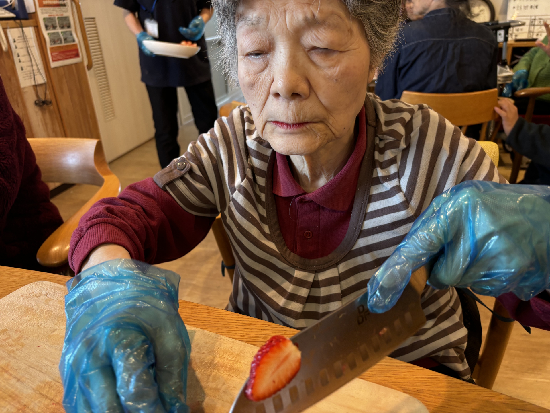 苺やメロンなど食べやすい大きさに切ってい行きます