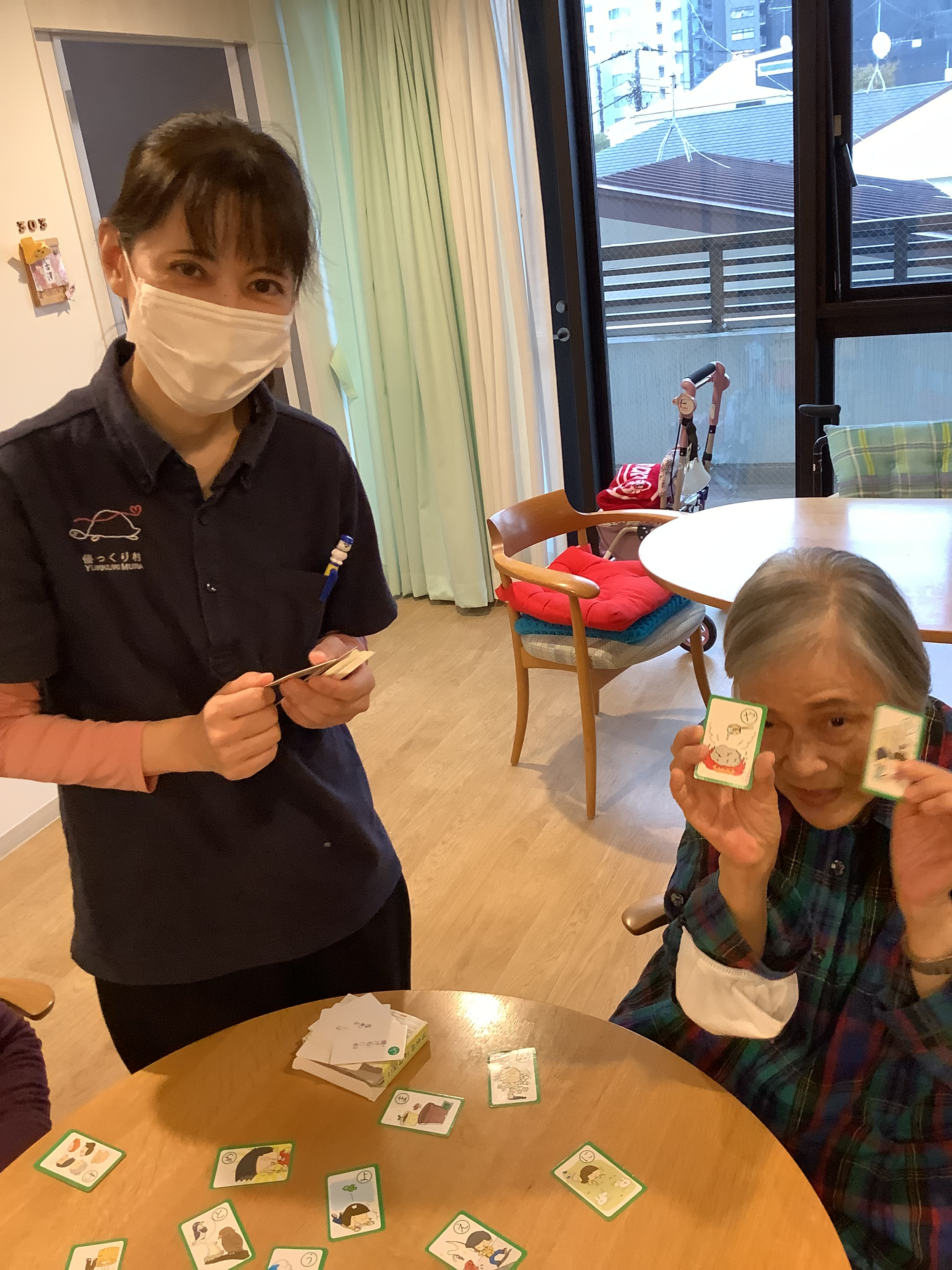 ことわざかるたで知っていることわざがあると声に出している方もいらっしゃいました。