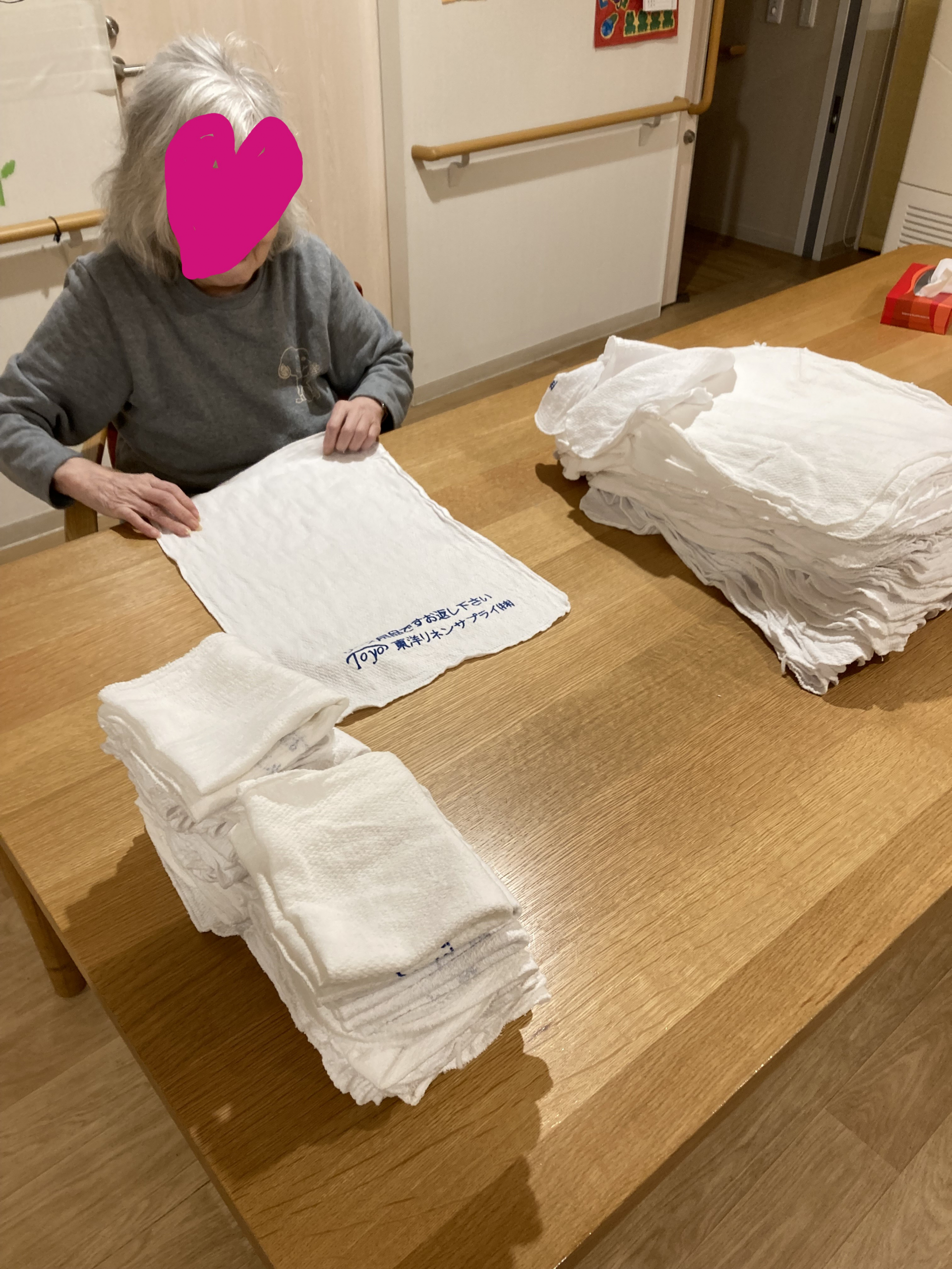 みなさんこんにちは 小規模多機能文京小日向です。今日から4月ですね! 1年間通して気持ちが前向きになる時ではないでしょうか。さて早起きをされた利用者さまが3文の得ではないですが、朝食前にタオル折りをしてくれました。いつもありがとうございます(^///^) 黙々とお手伝いをされるお姿に清々しい気持ちにさせていただきました。職員も心機一転気持ちの切り替えをしたいものですね、、、 bytouyama