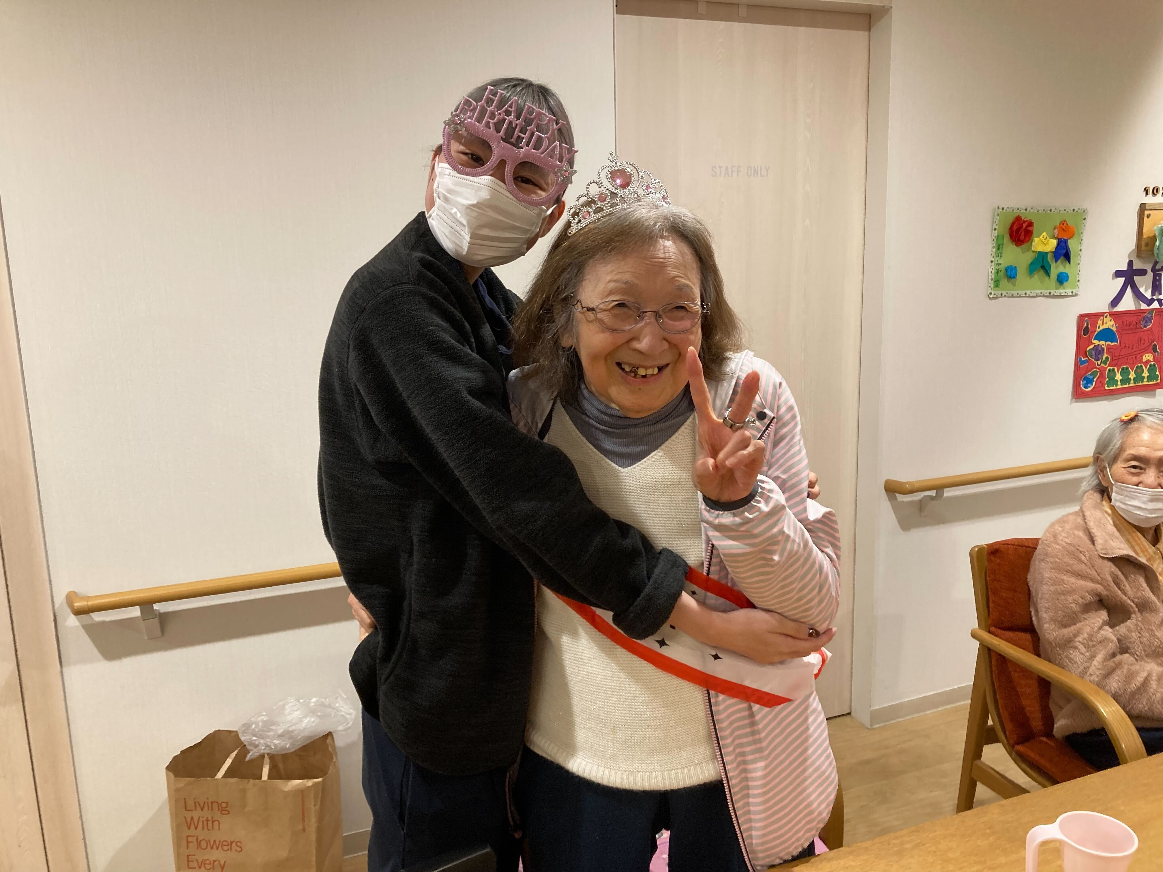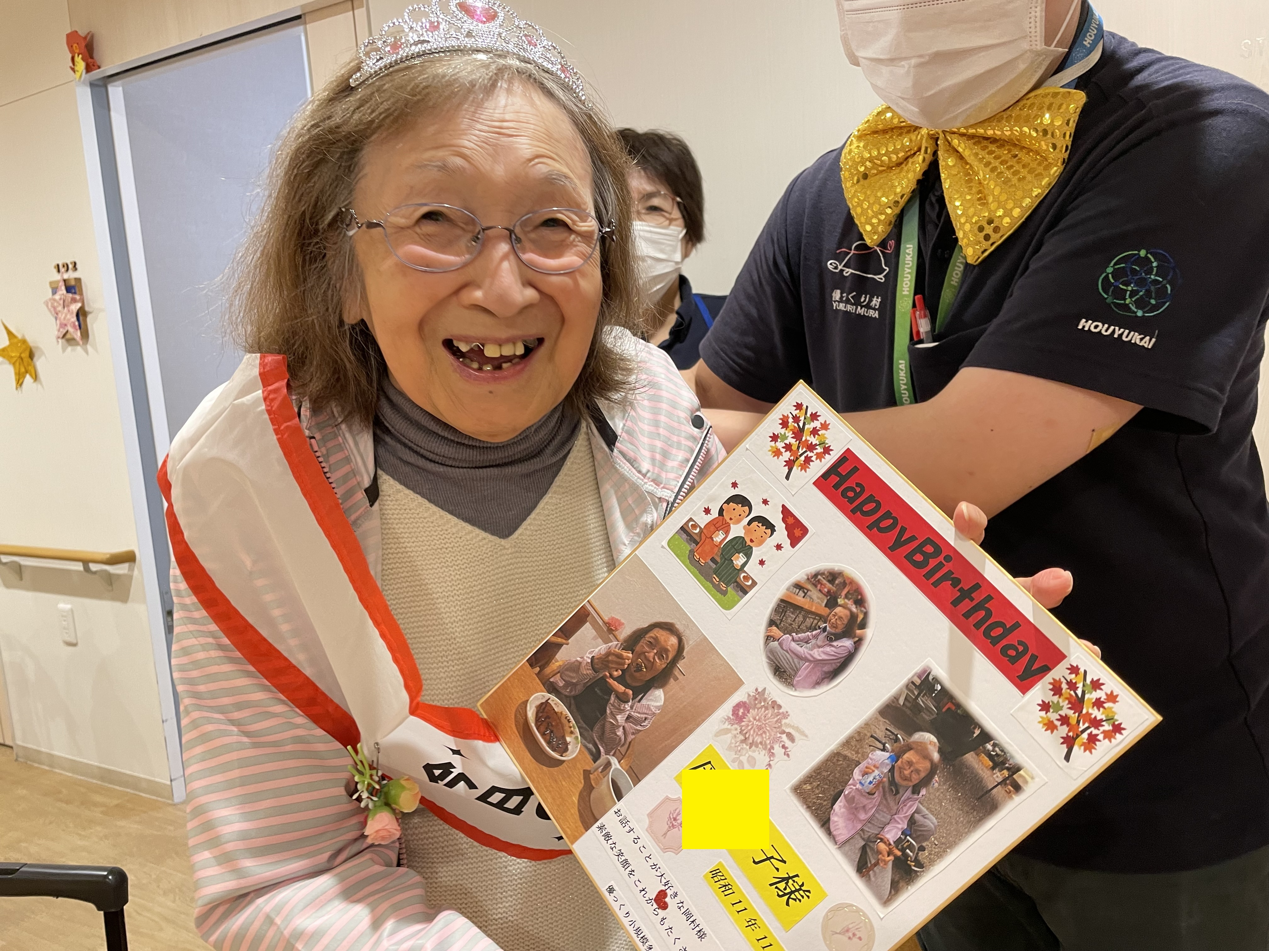 ハッピーバースデイ♪を歌って、職員から色紙のプレゼント(^^♪