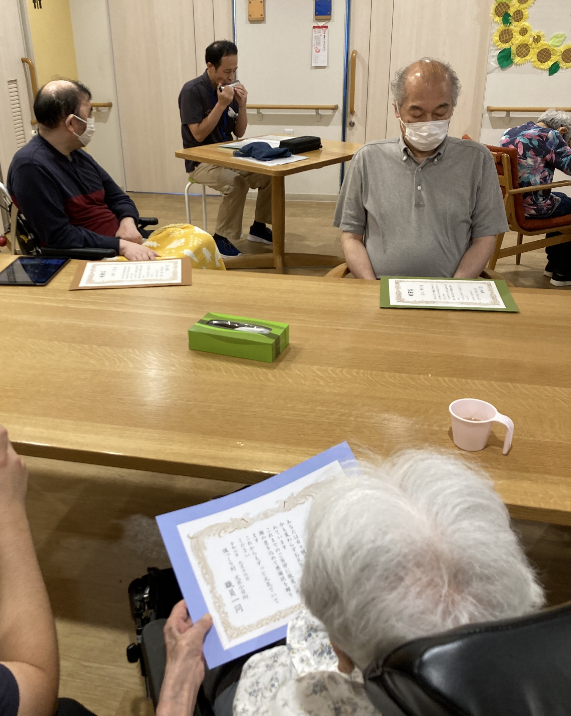 感謝状贈呈の後は職員によるハーモニカ演奏を披露。