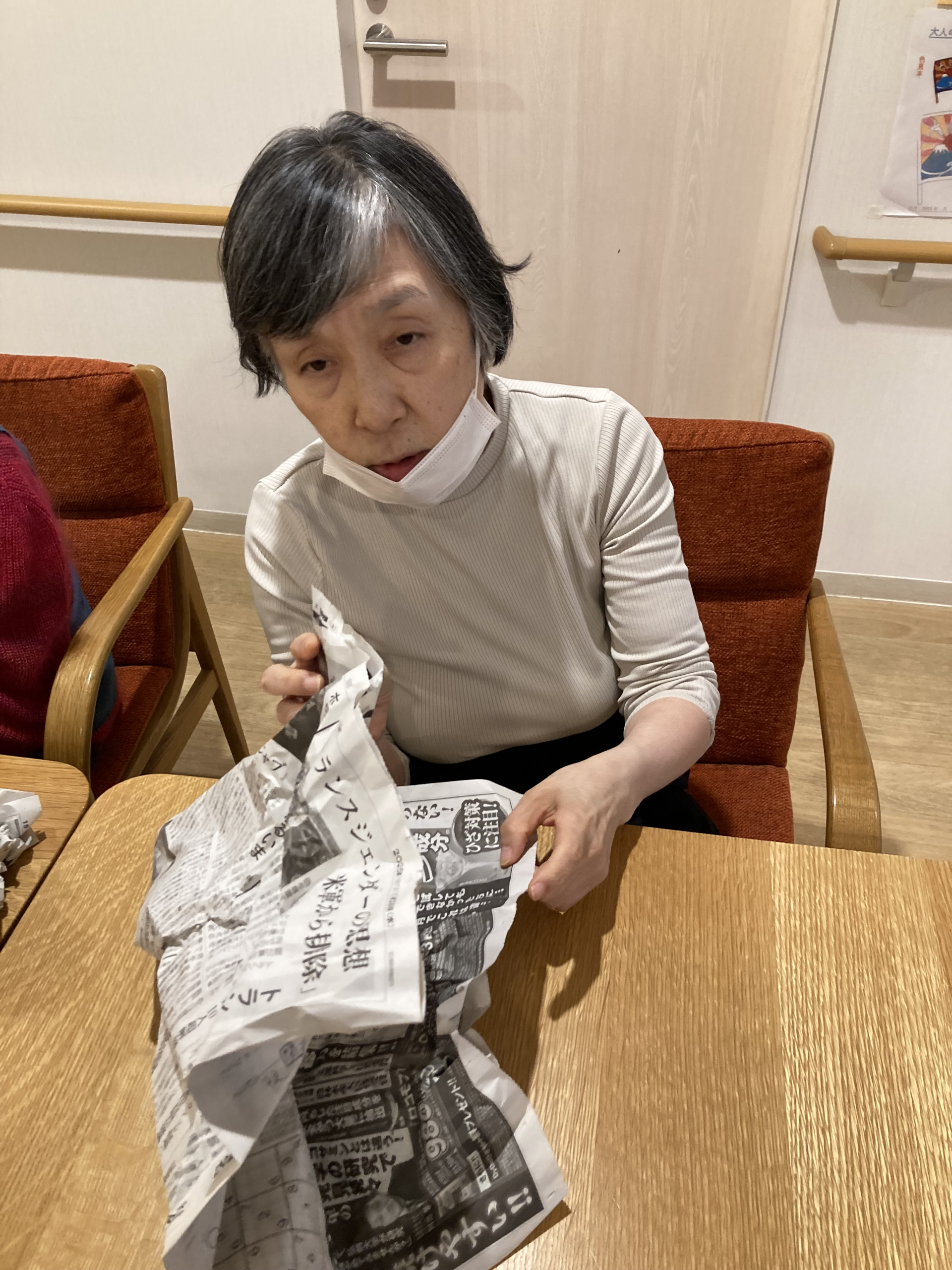 たまがなくなったので急遽新聞紙を丸めてもらいました。(後半に続きます)