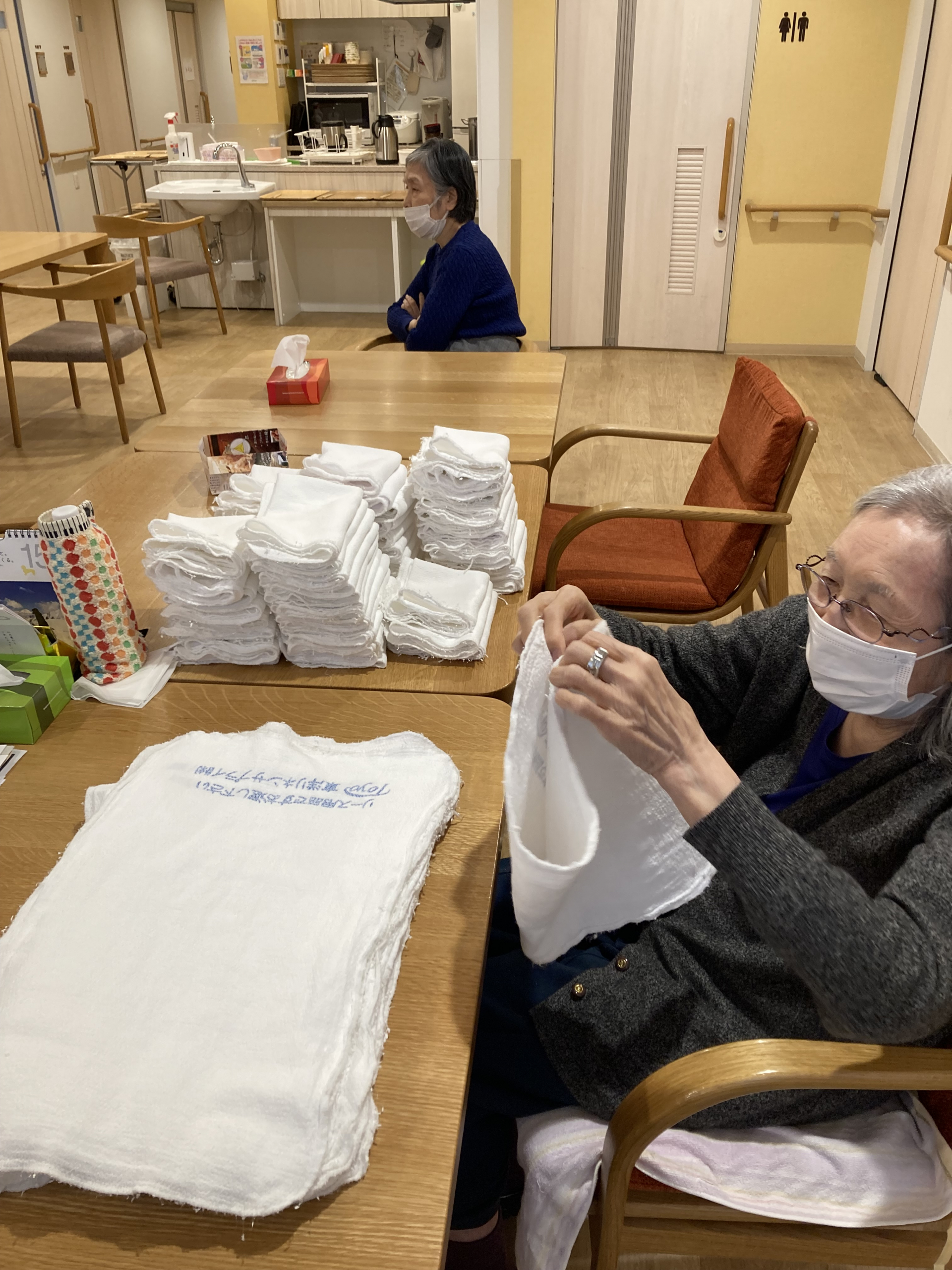 午後は黙々とタオル折りをされる方