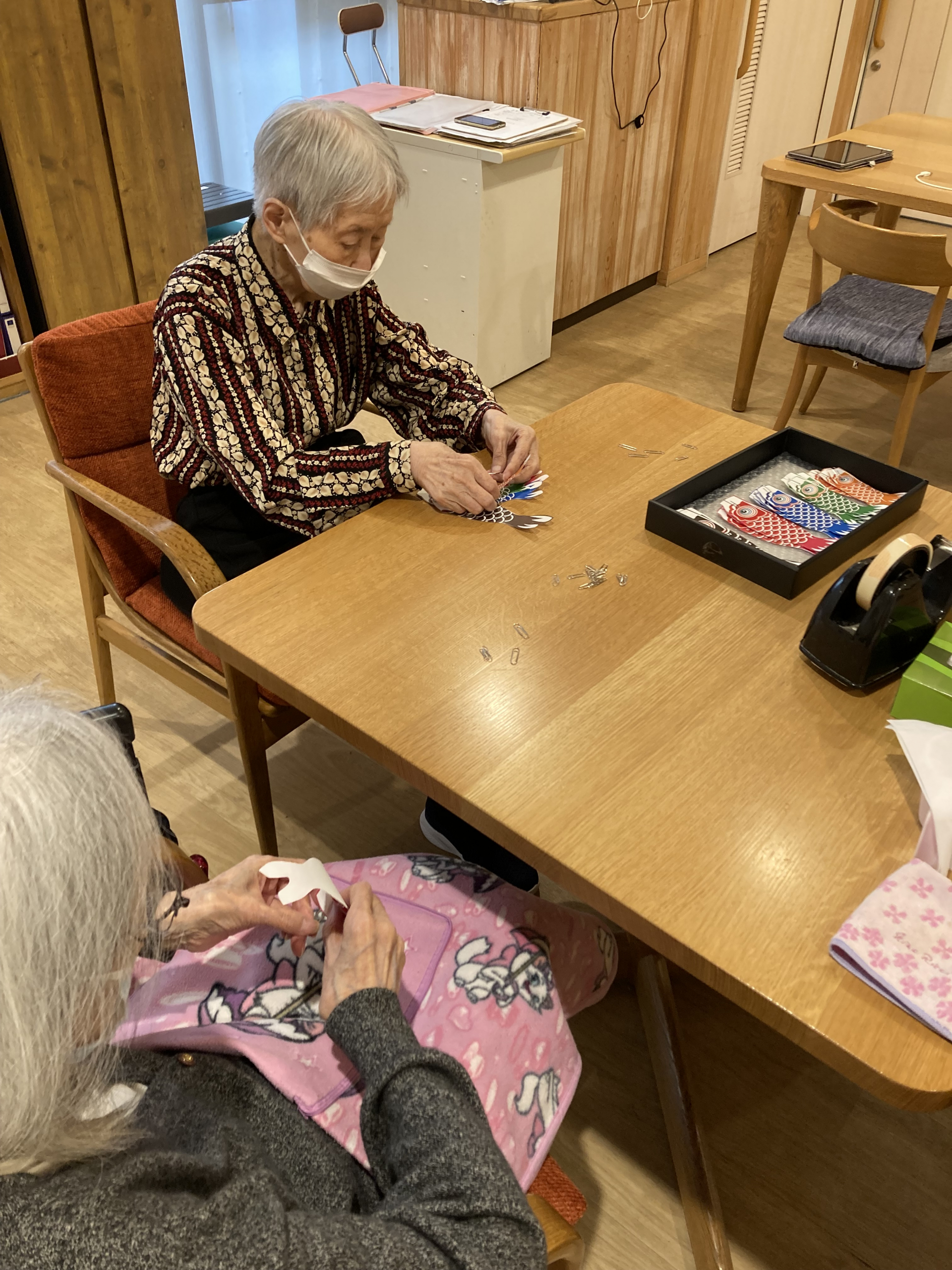 ハサミを使用して鯉のぼりを切ってもらいました。