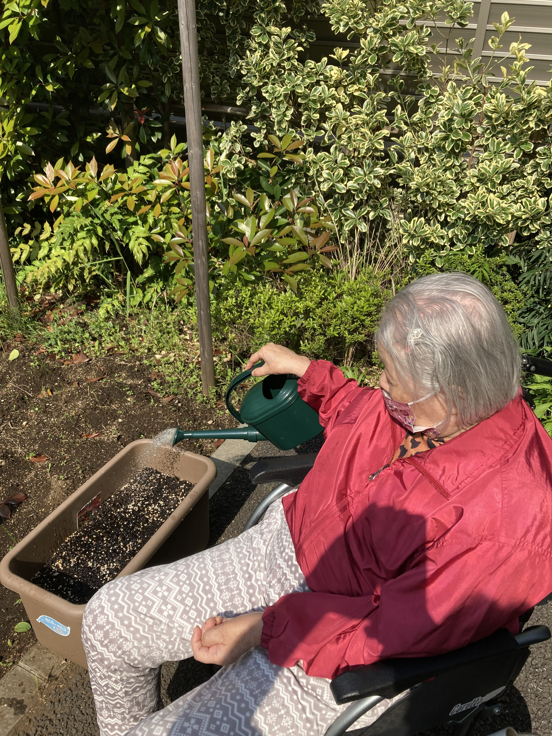 おやつの後に外の空気を吸いに行きました。プランターに水やりも忘れずに。