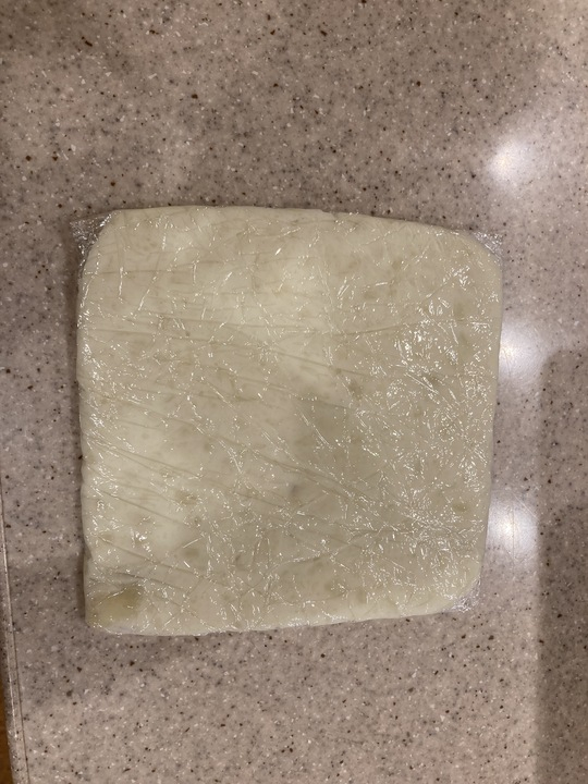 茹でたジャガイモをつぶして、片栗粉をまぶし、シート状にして冷凍
