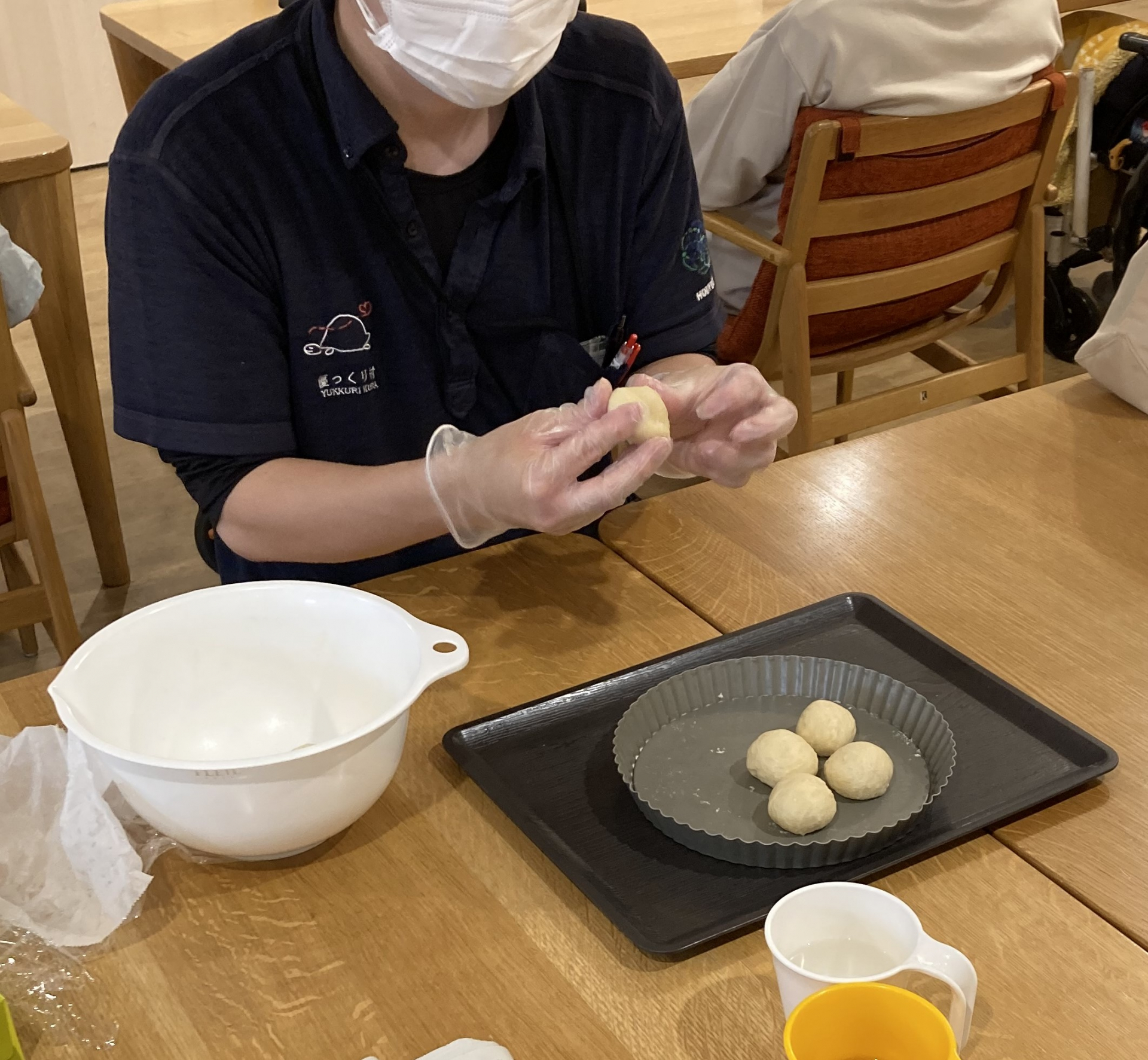 さて、本日3時のおやつに焼き立ての手作りパンを提供しましたので紹介をさせていただきます。