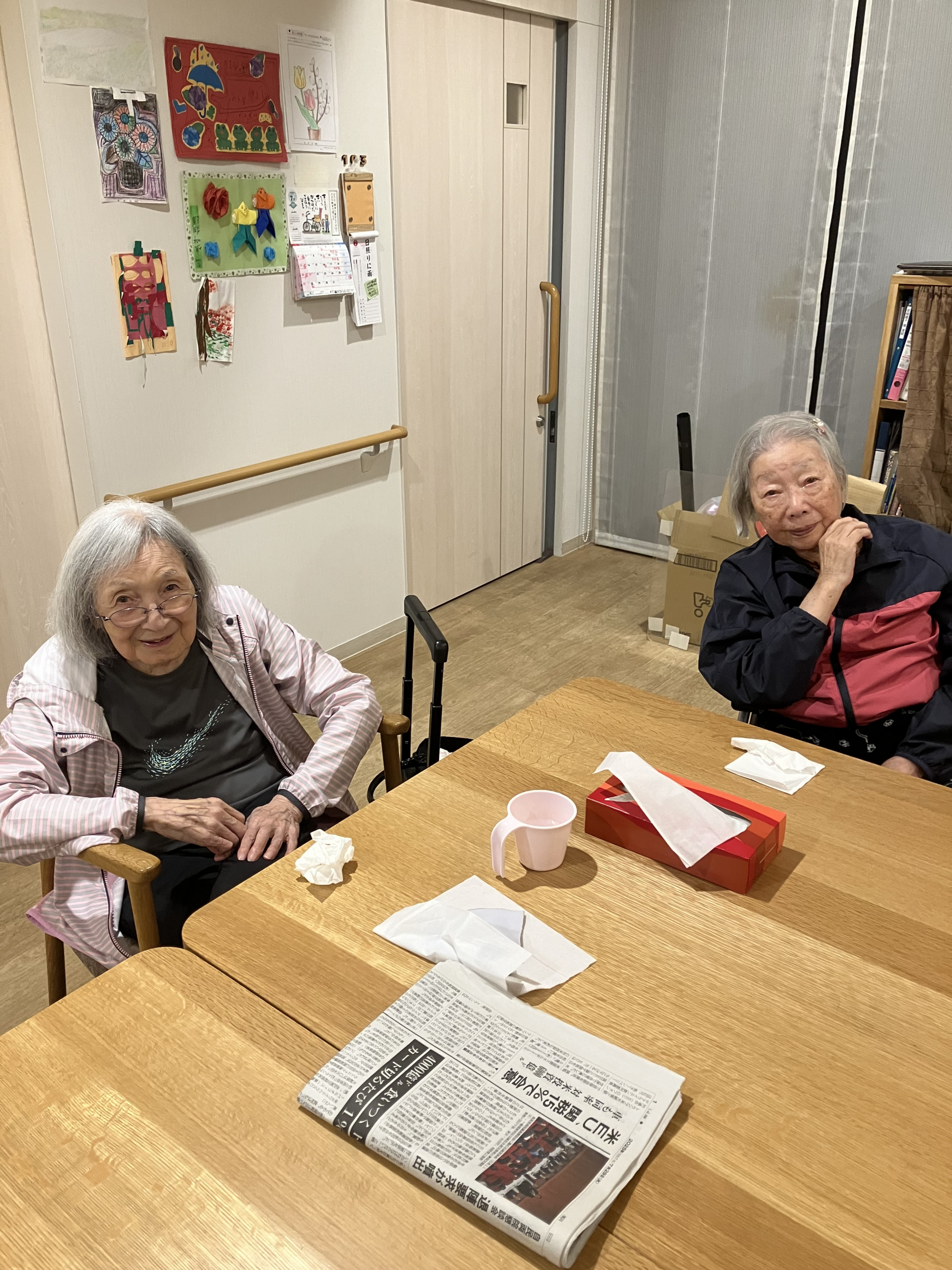 ショートスティ利用者様の夕食後のご様子です。