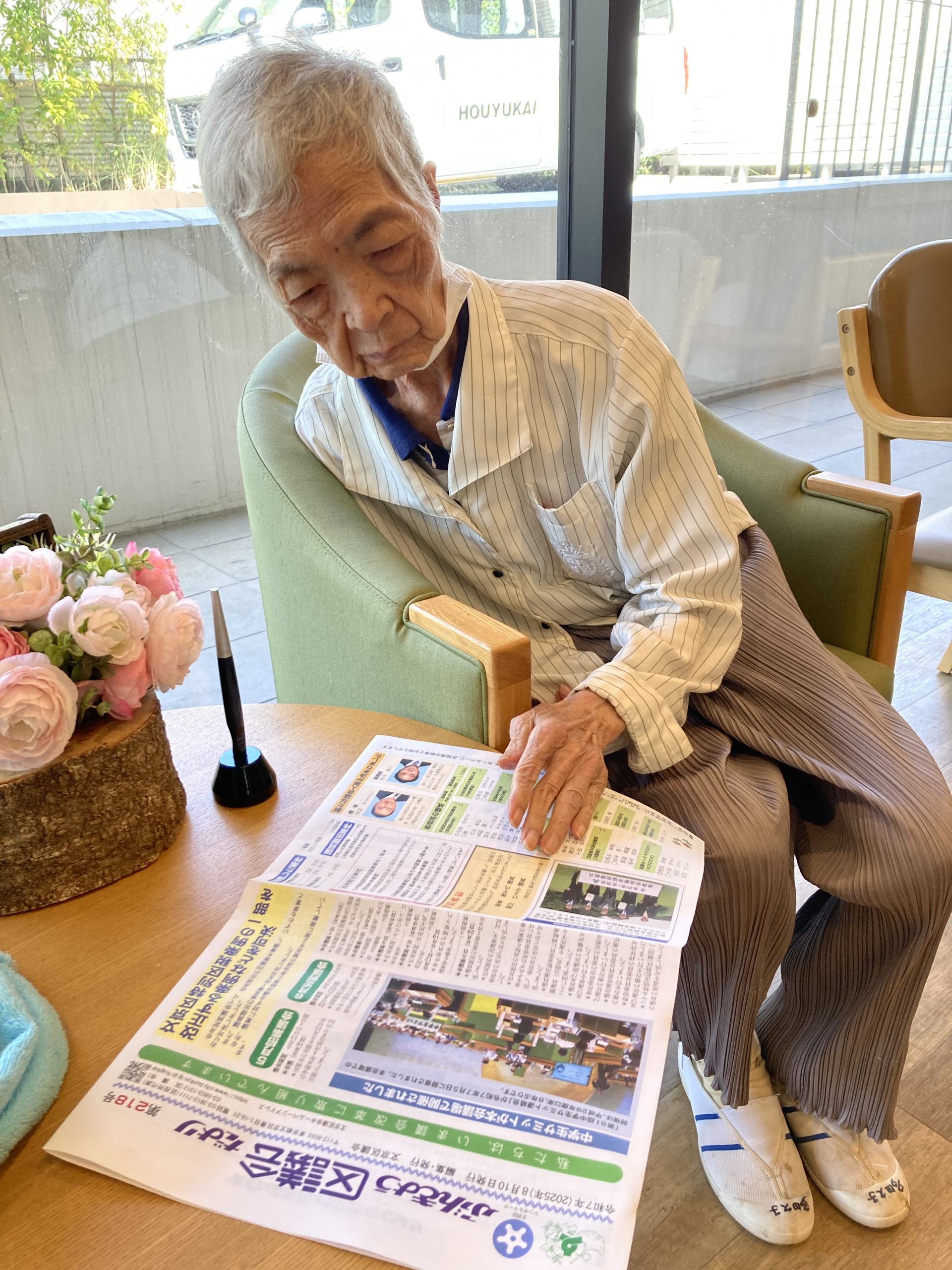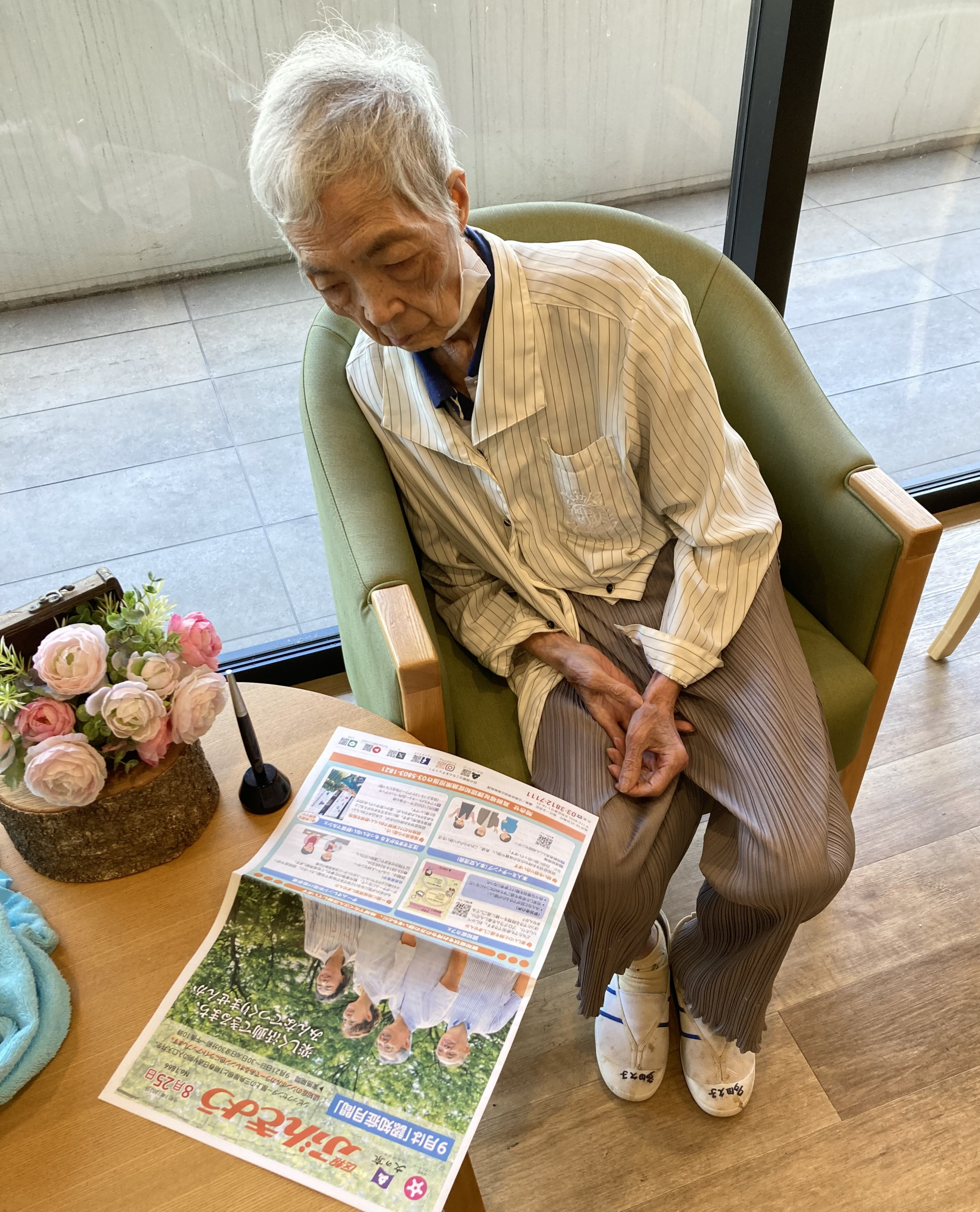 施設エントランスで一休み。