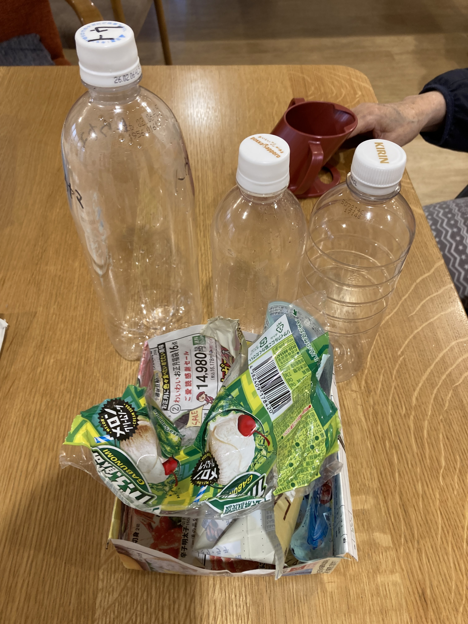 ペットボトルのラベルを剥がします。