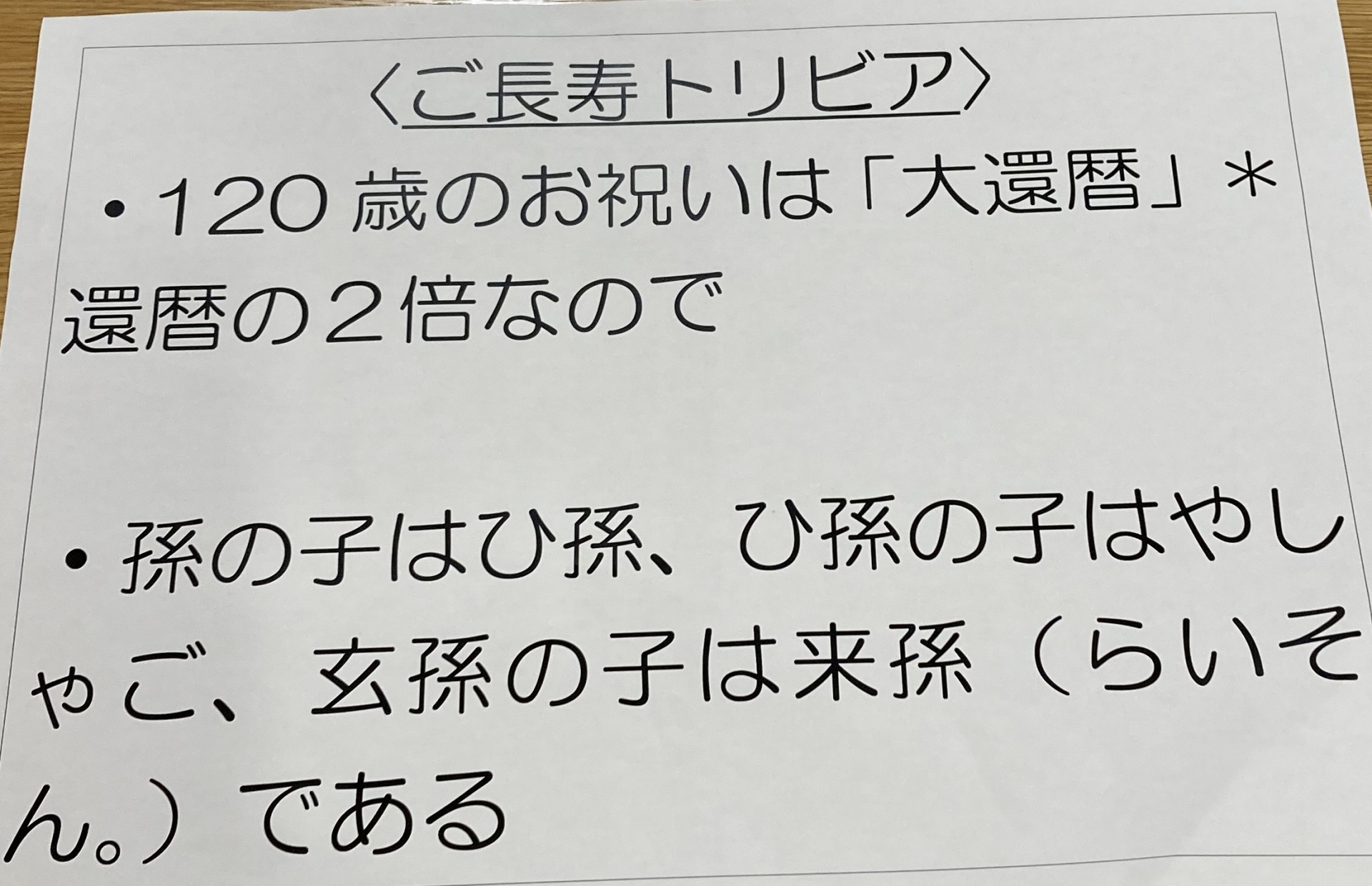 昨日に続き敬老の日のイベントの様子をお伝えします。