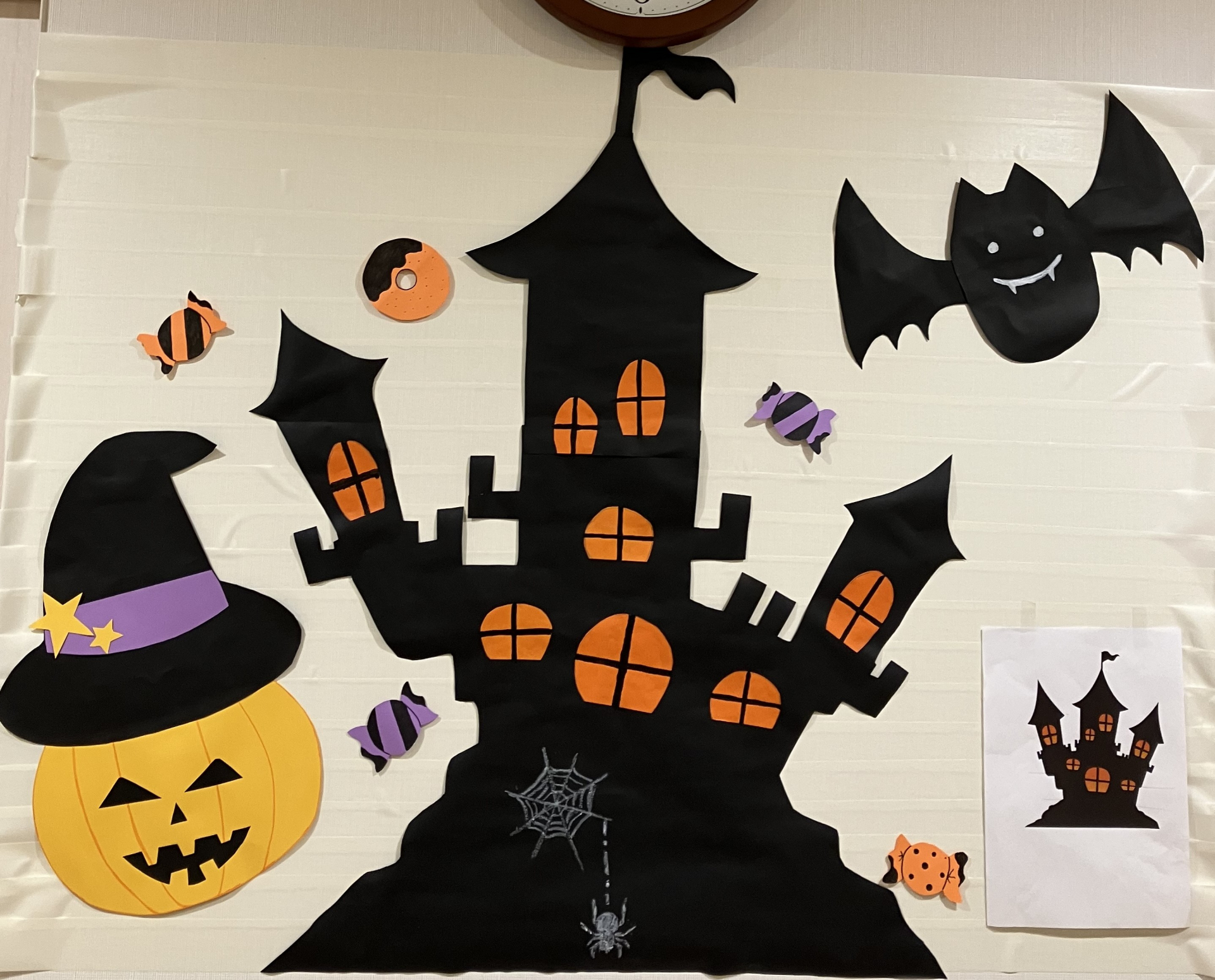 ハロウィンの壁飾りを利用者様と
