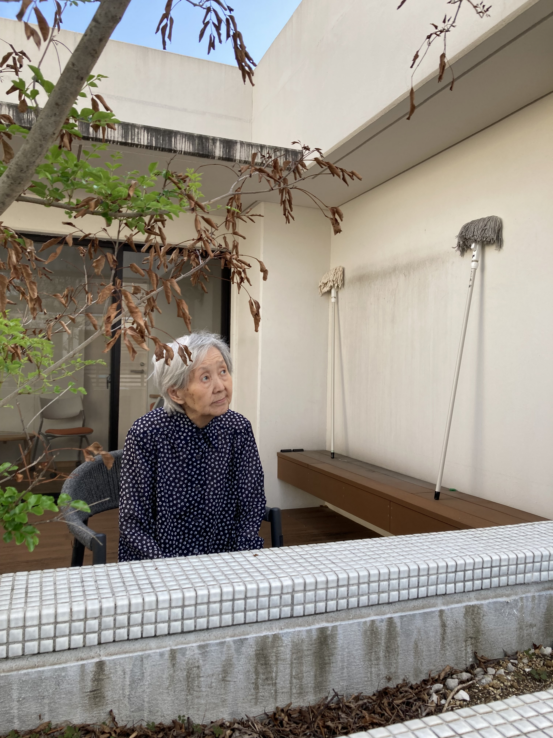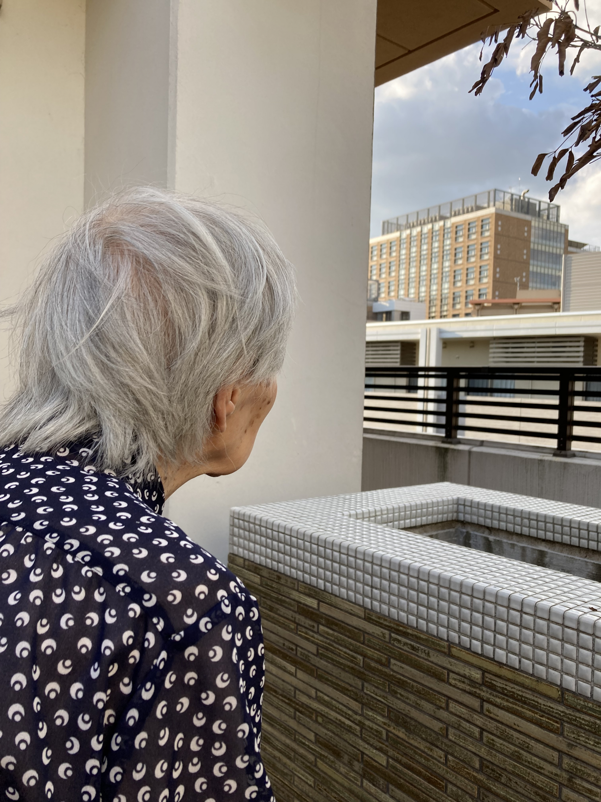 利用者さまを3階のベランダに誘いました。