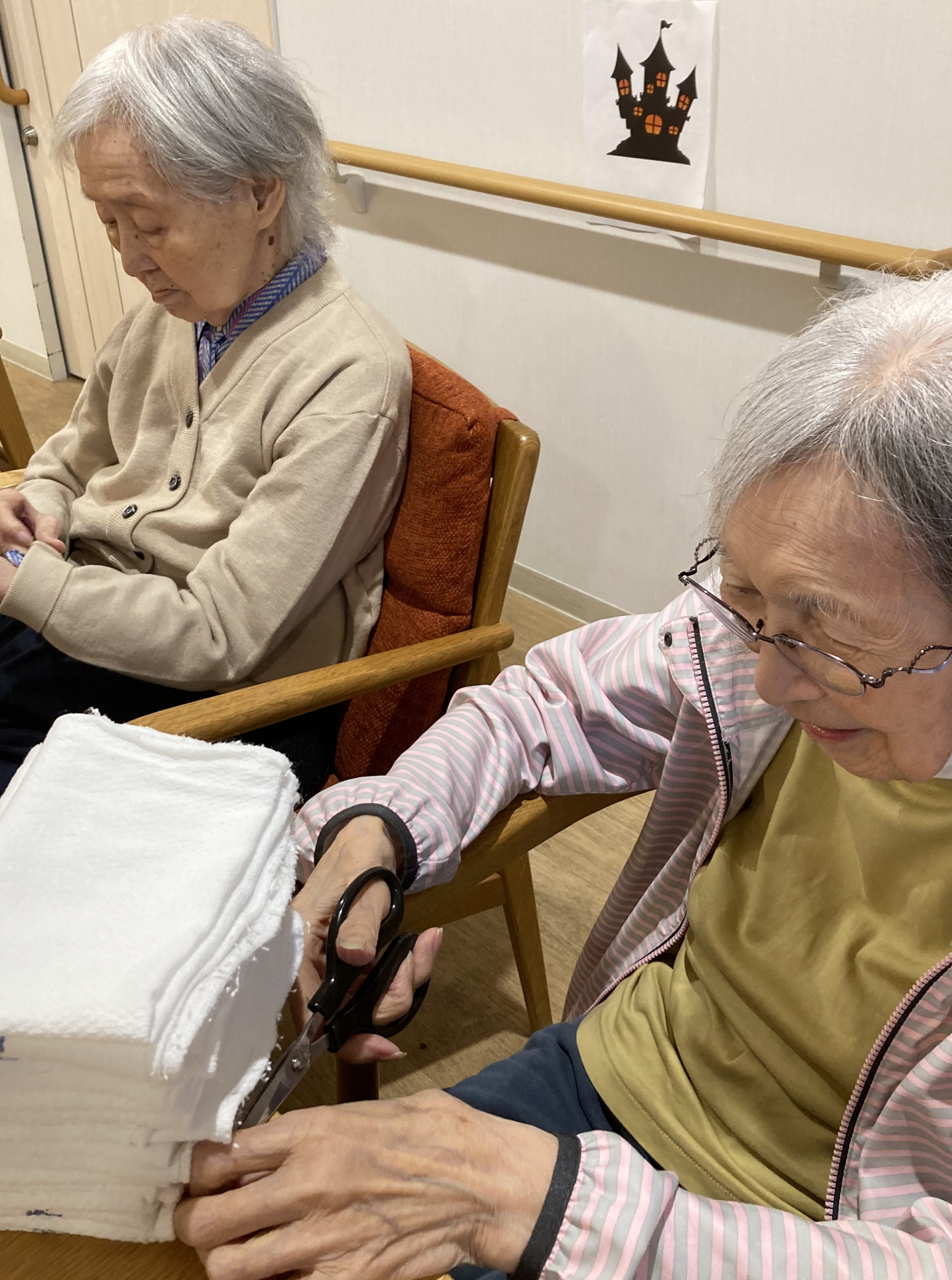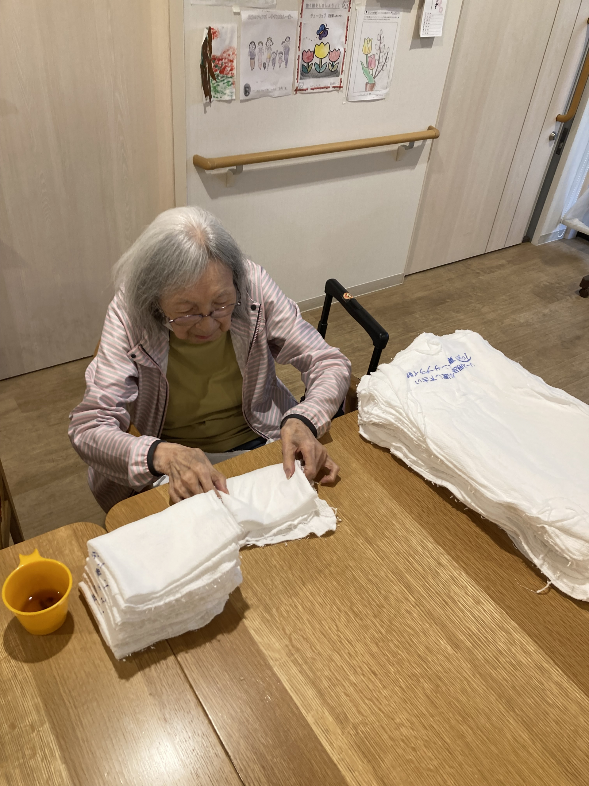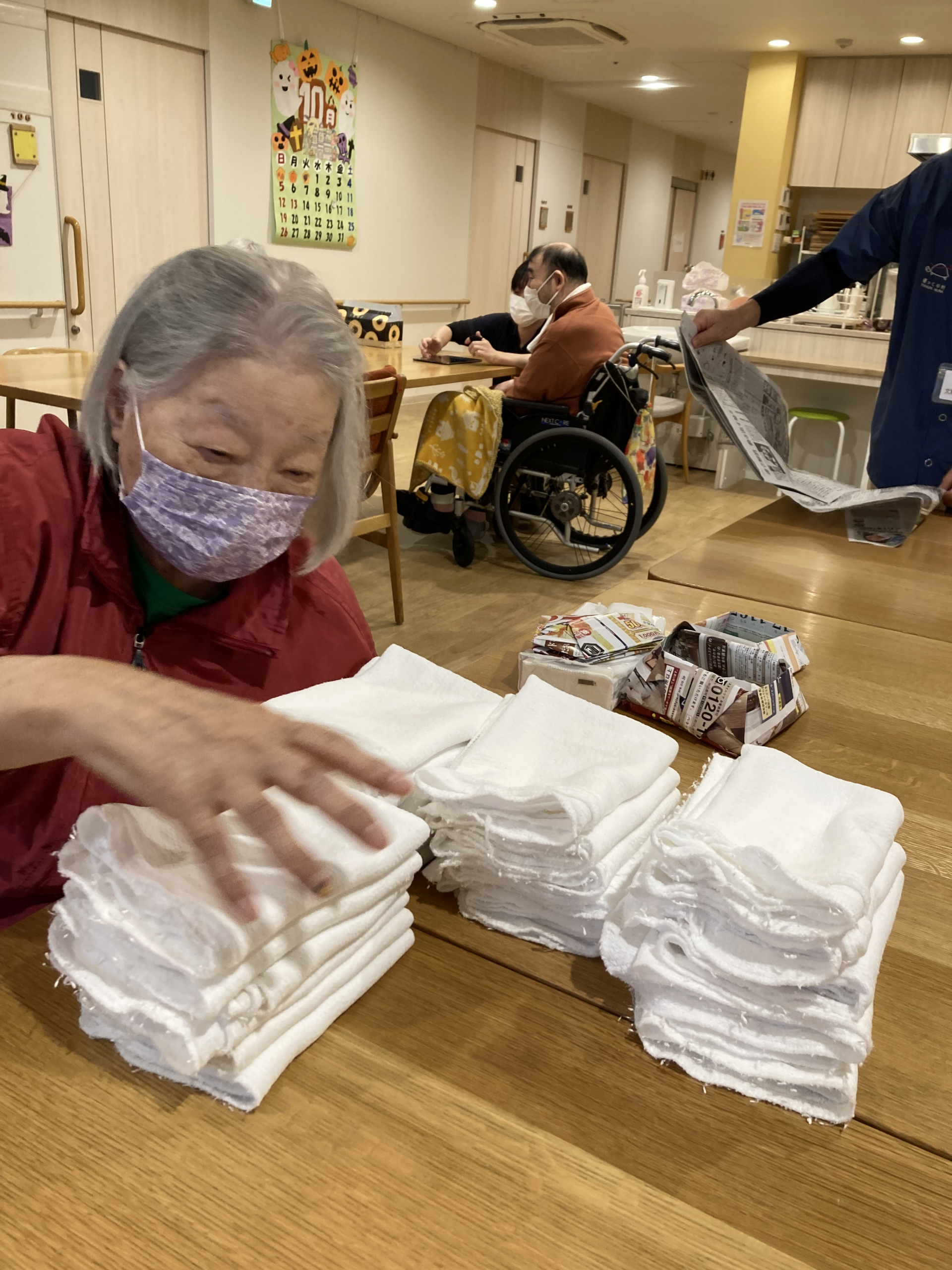 タオルを並べるお手伝いをしてくれました。