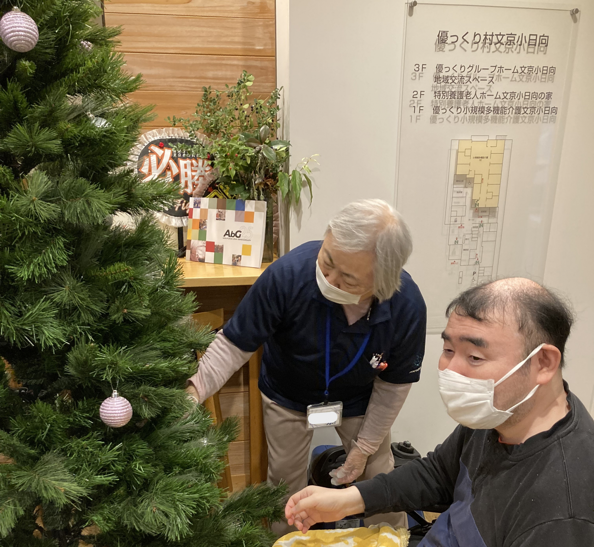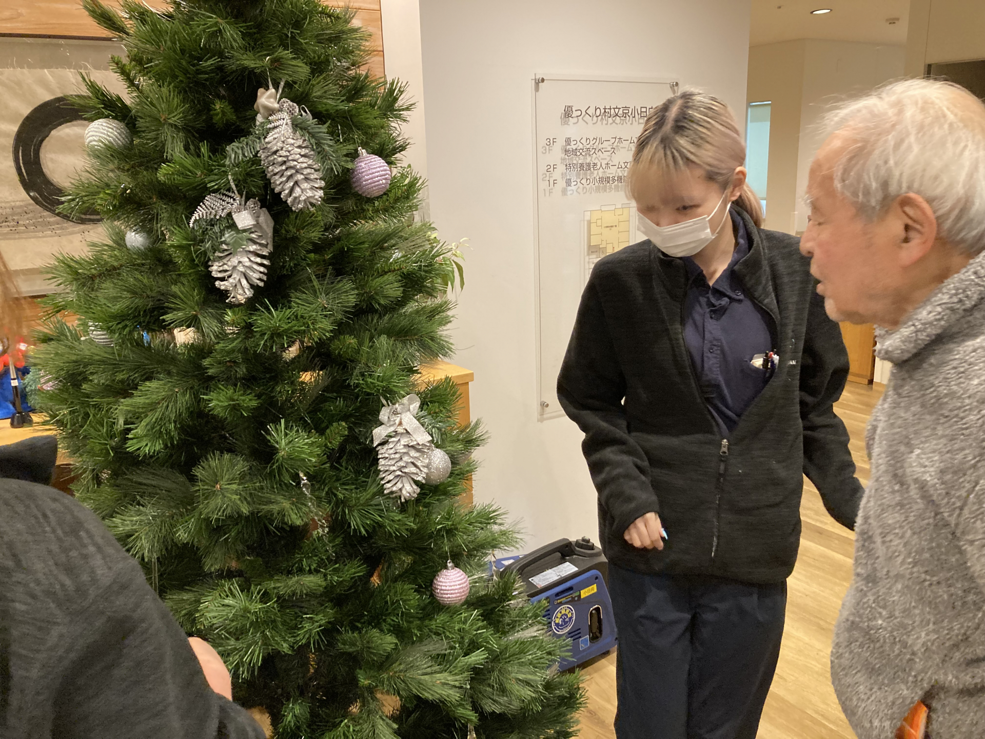 【小規模多機能文京小日向☆クリスマス】~利用者様エントランスのツリーの飾りつけをする~