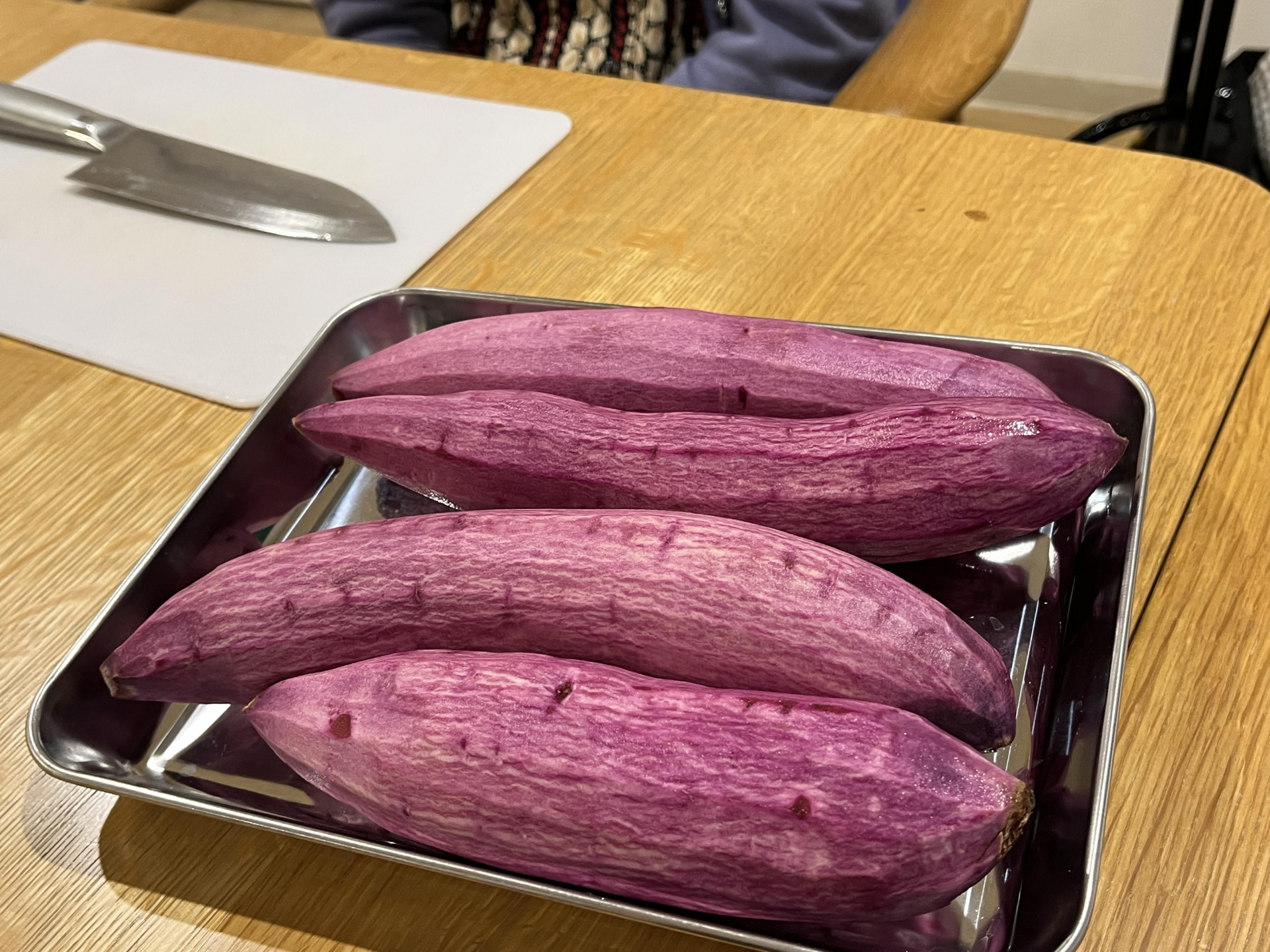 おやつに紫芋を使って何かを作るようです。