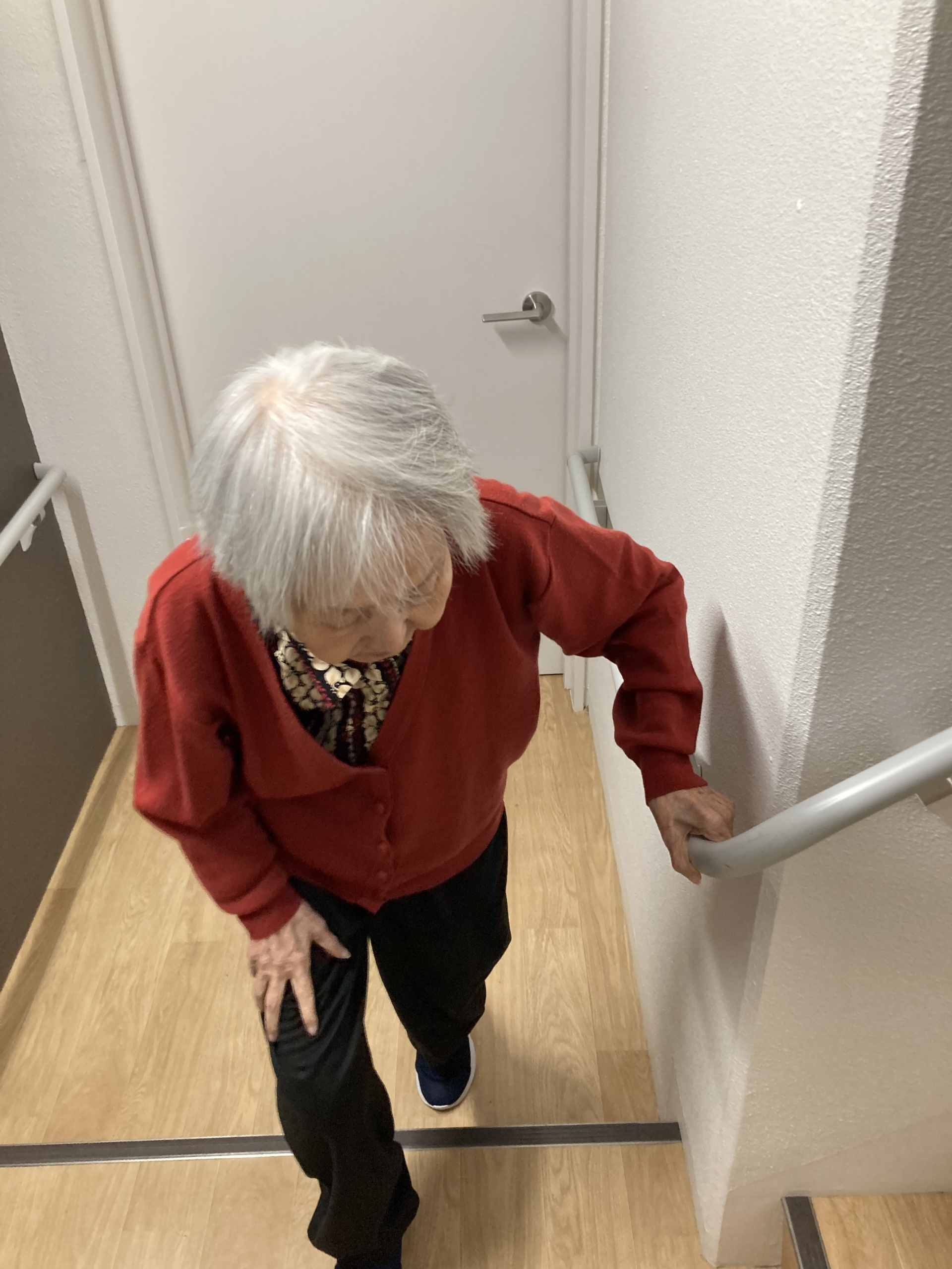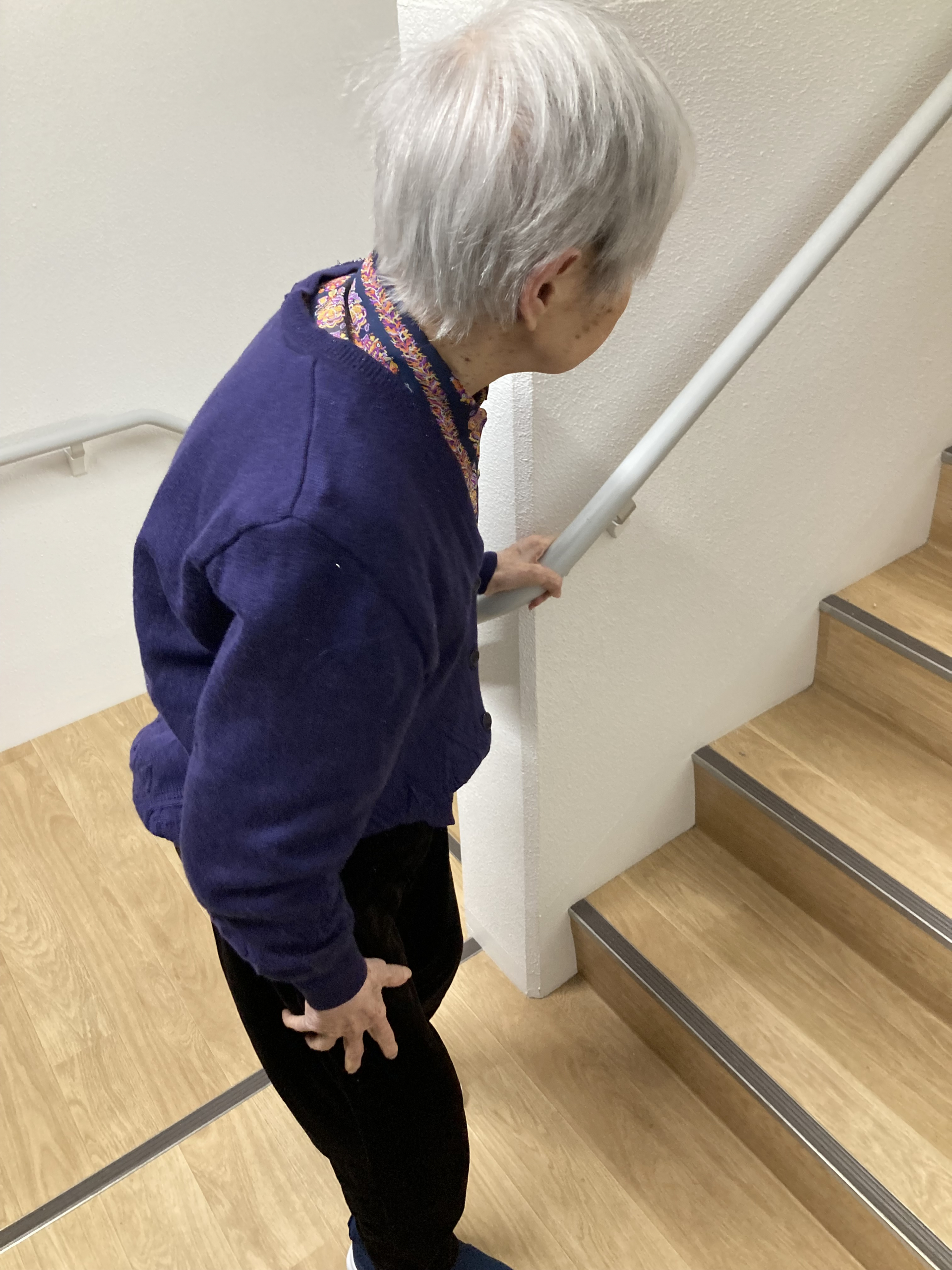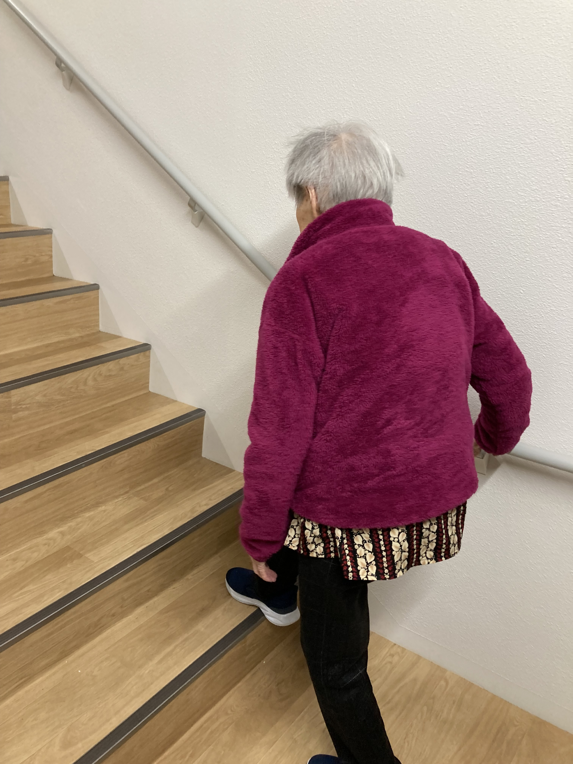 いつもの歩行練習の後に階段上りです。