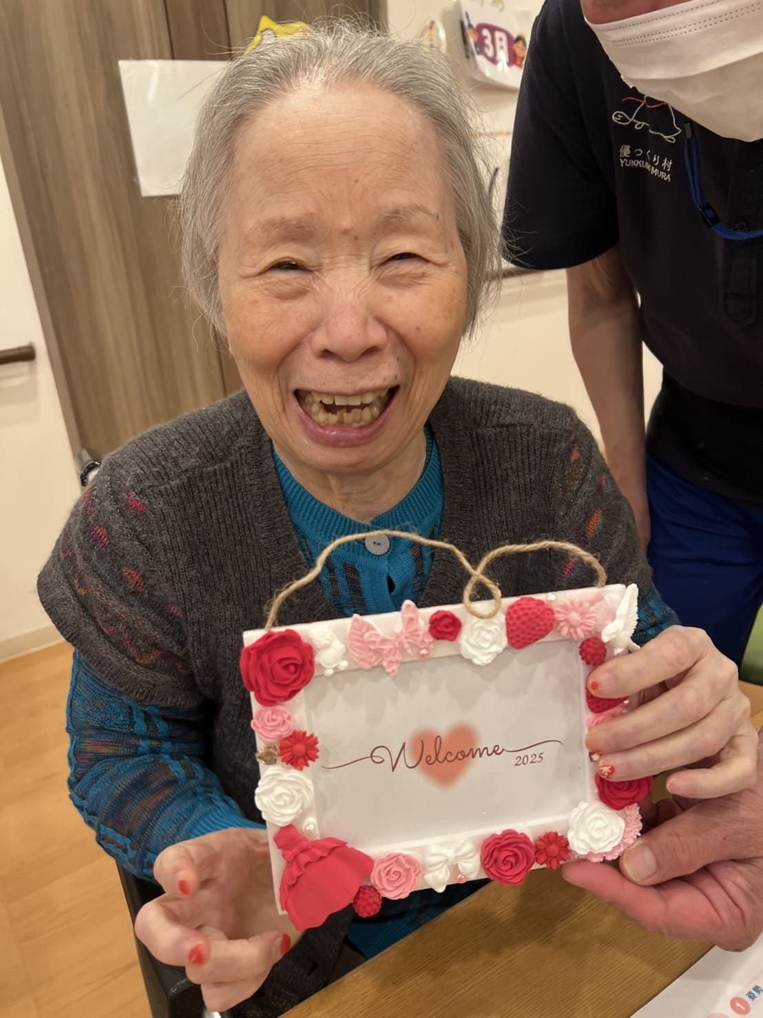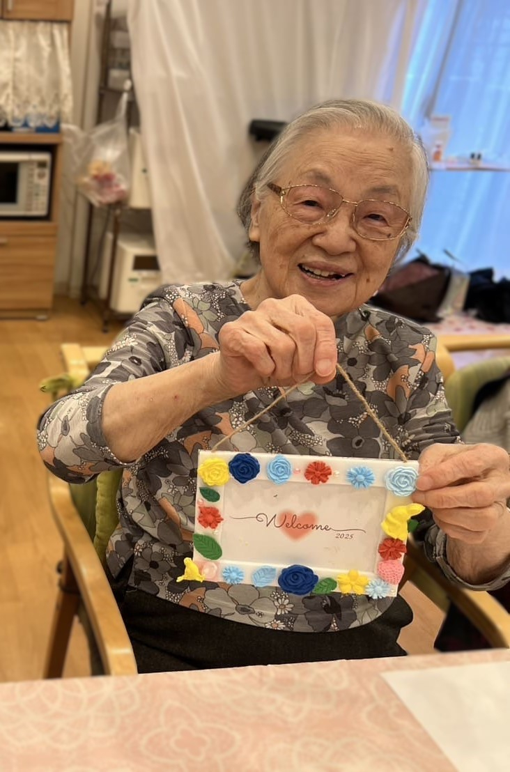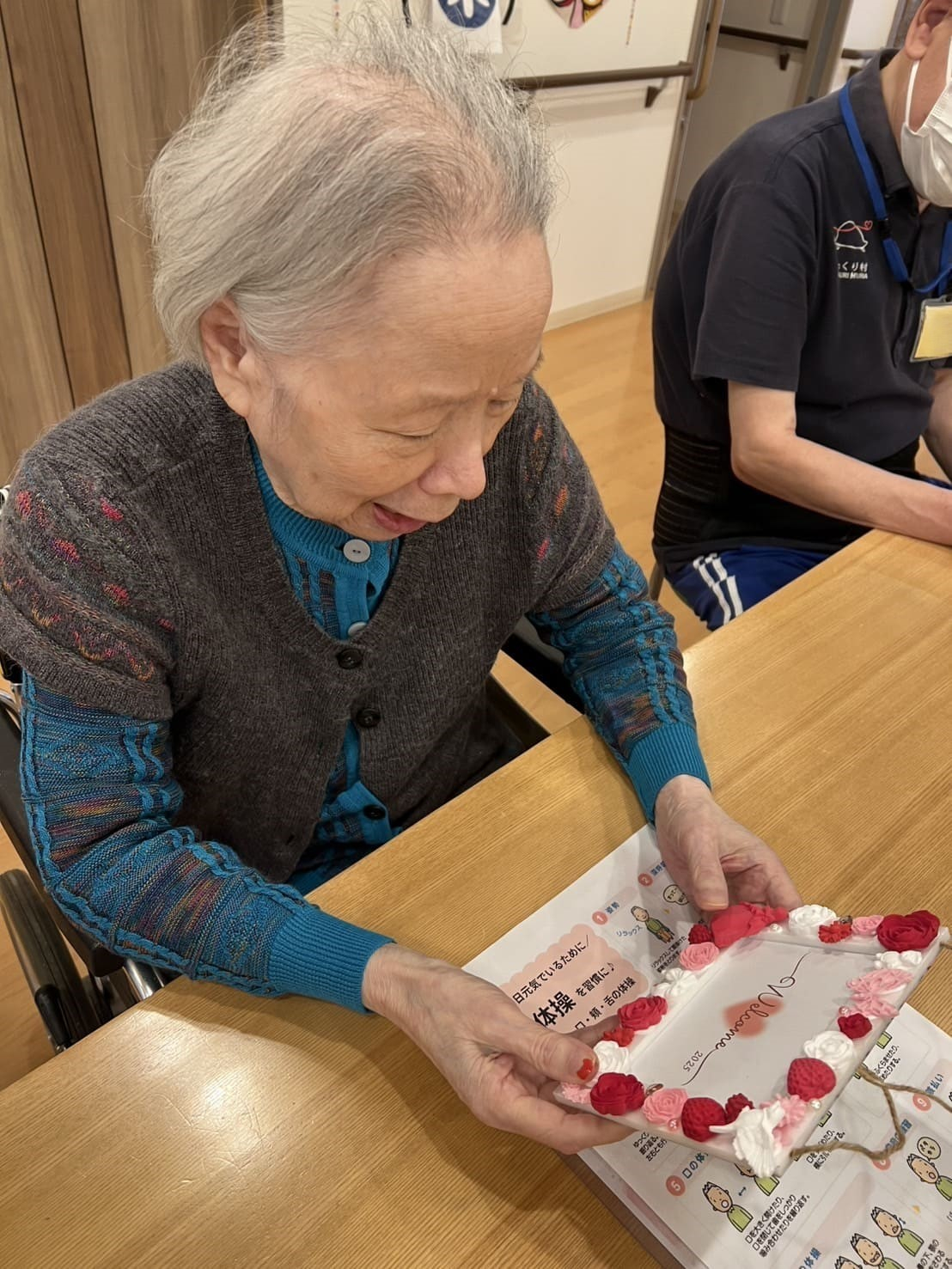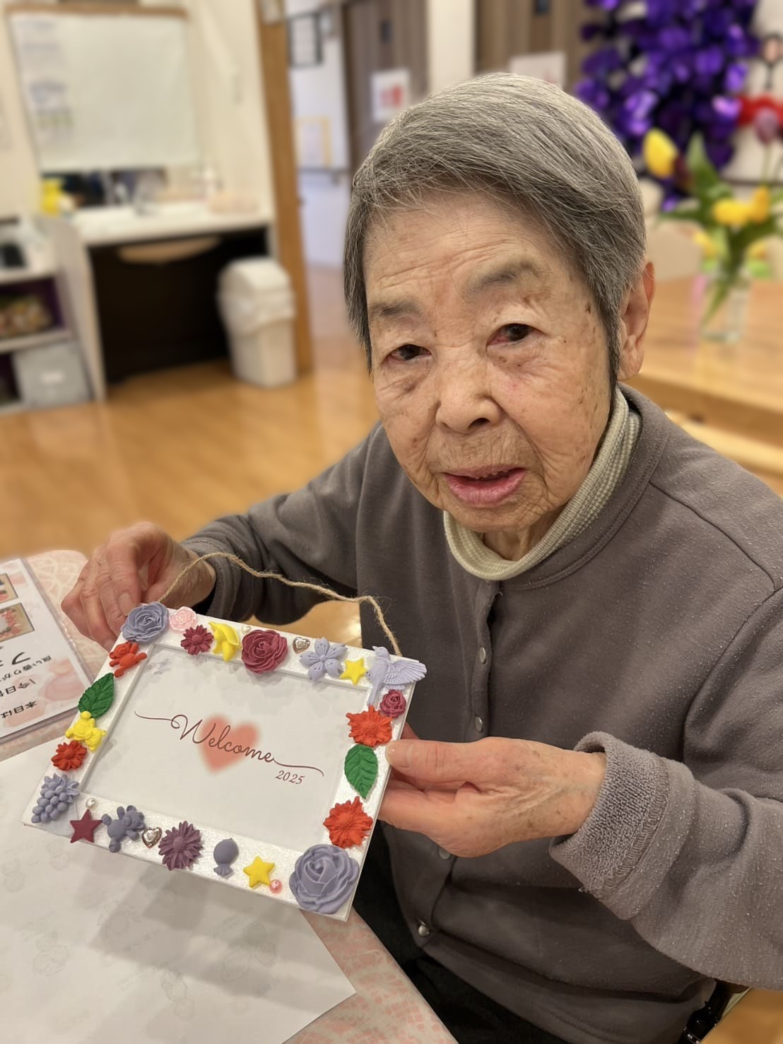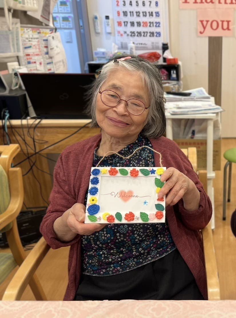 レクリエーションで出来上がった、良い香りがする手作りフォトフレーム。