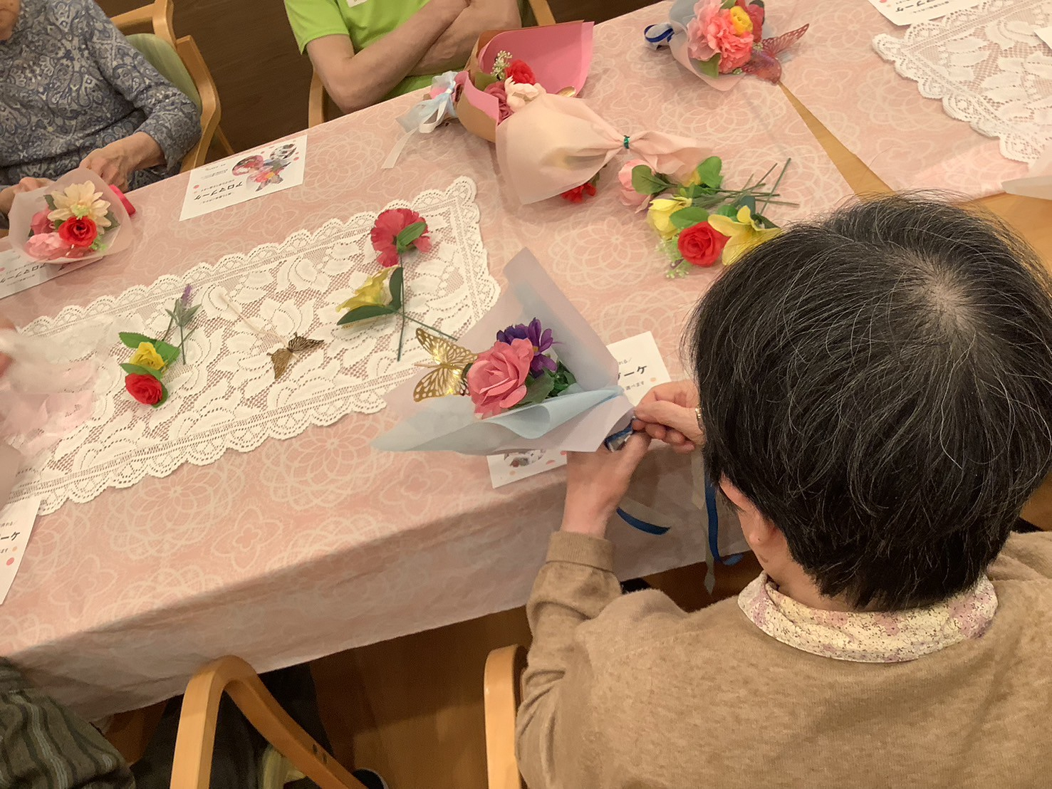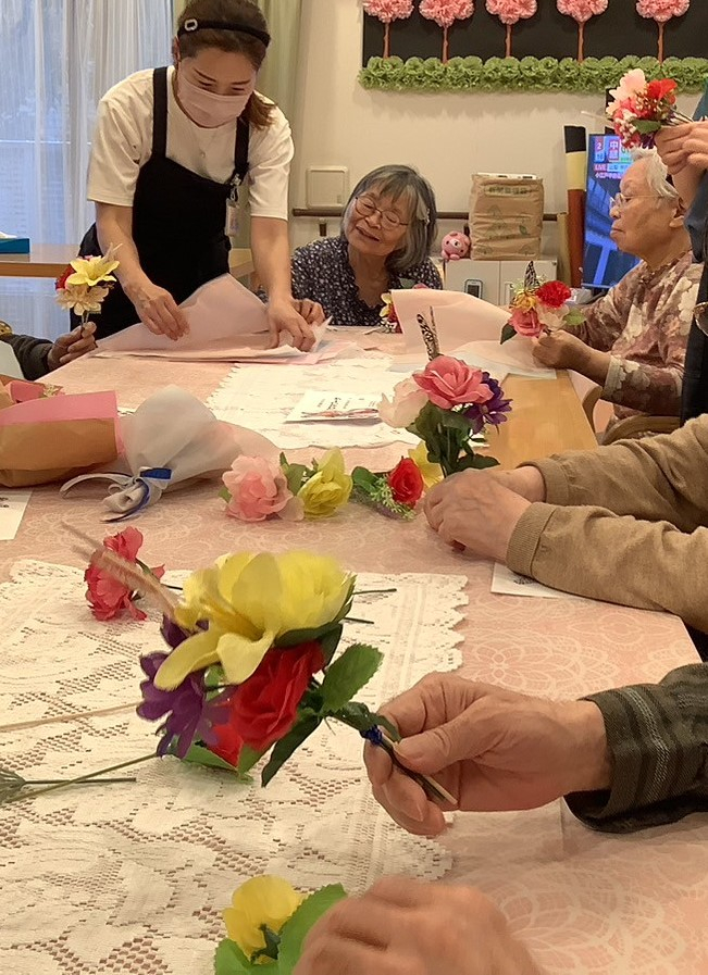 この日の美容レクは、アロマブーケづくり!