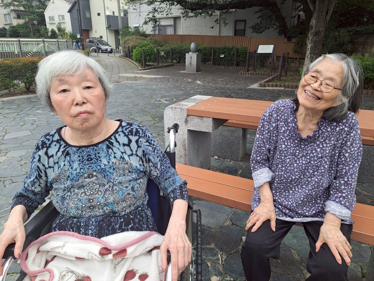 この日、散歩の定番コースになっている公園は子どもたちで賑わっていたので、そこから少し離れたベンチまで移動。落ち着いた、静かな空間でゆっくりしてきました。