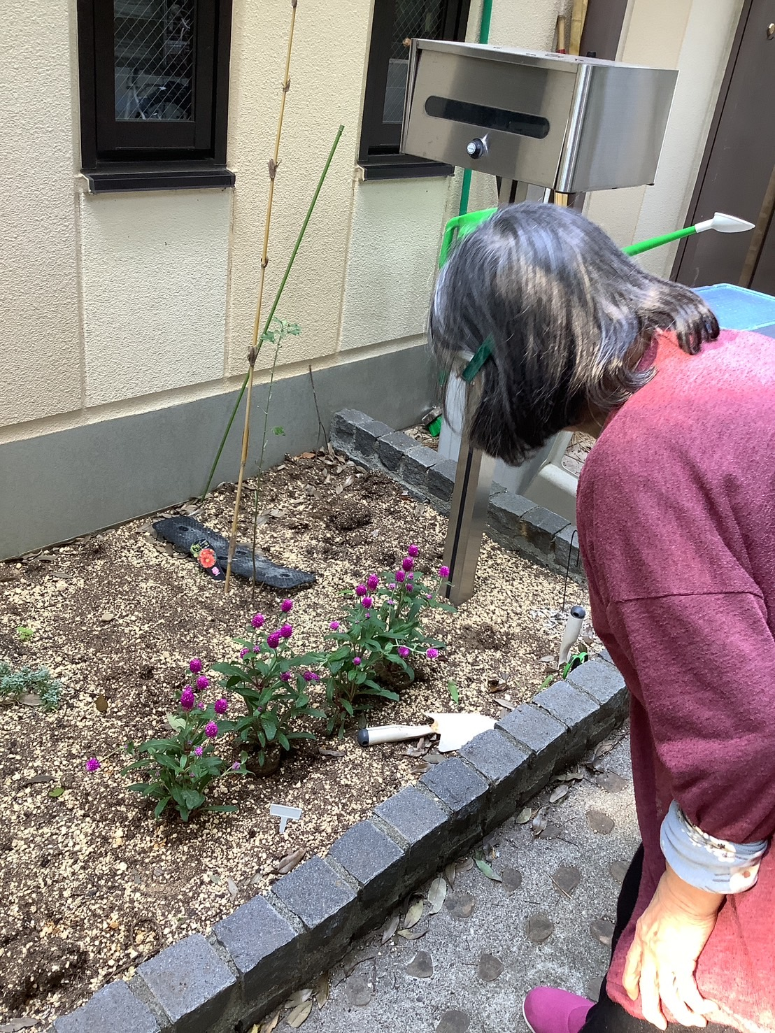 玄関横の花壇だけでなく、入口スロープのところにもお花がございます(*'▽')
