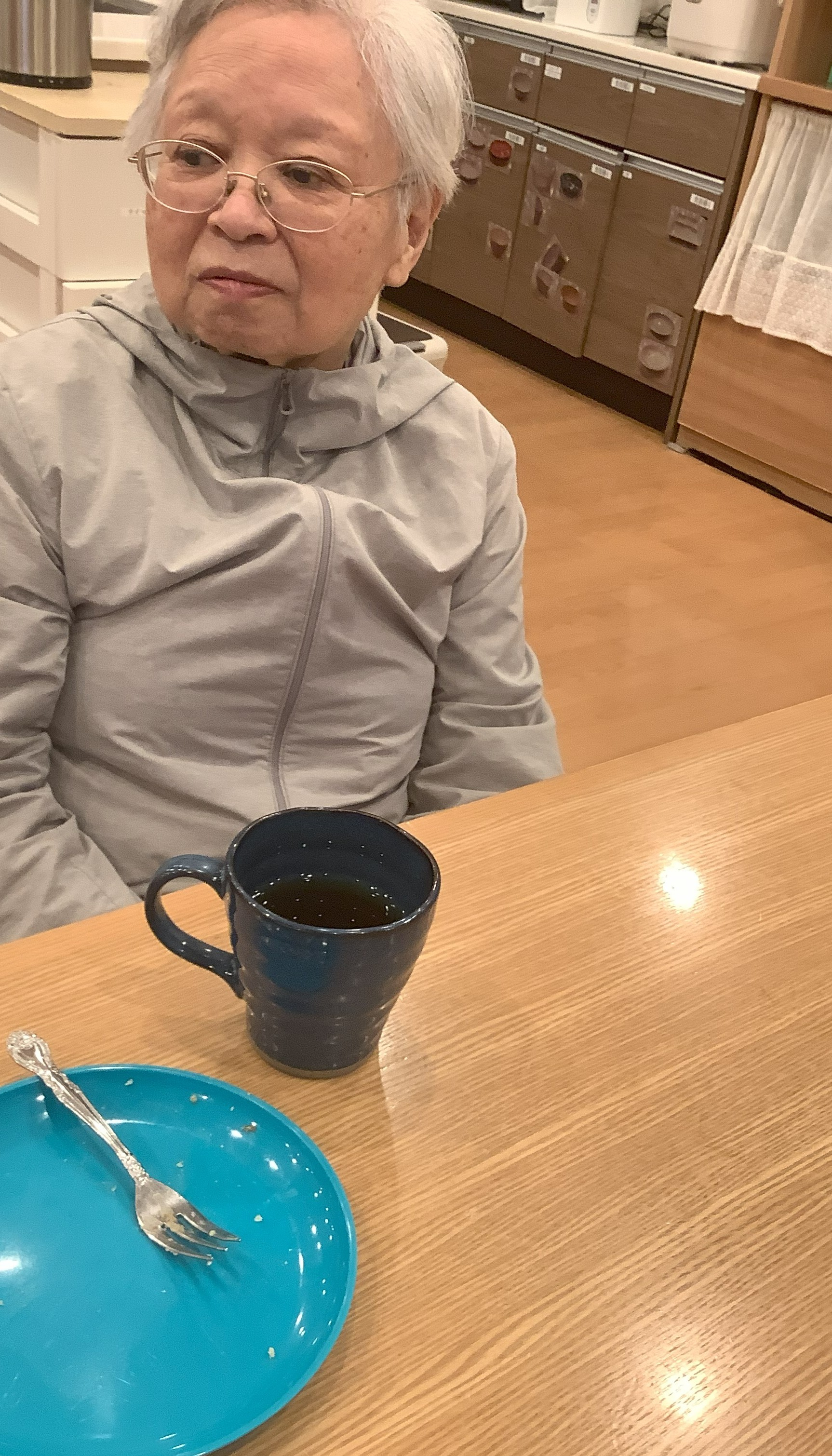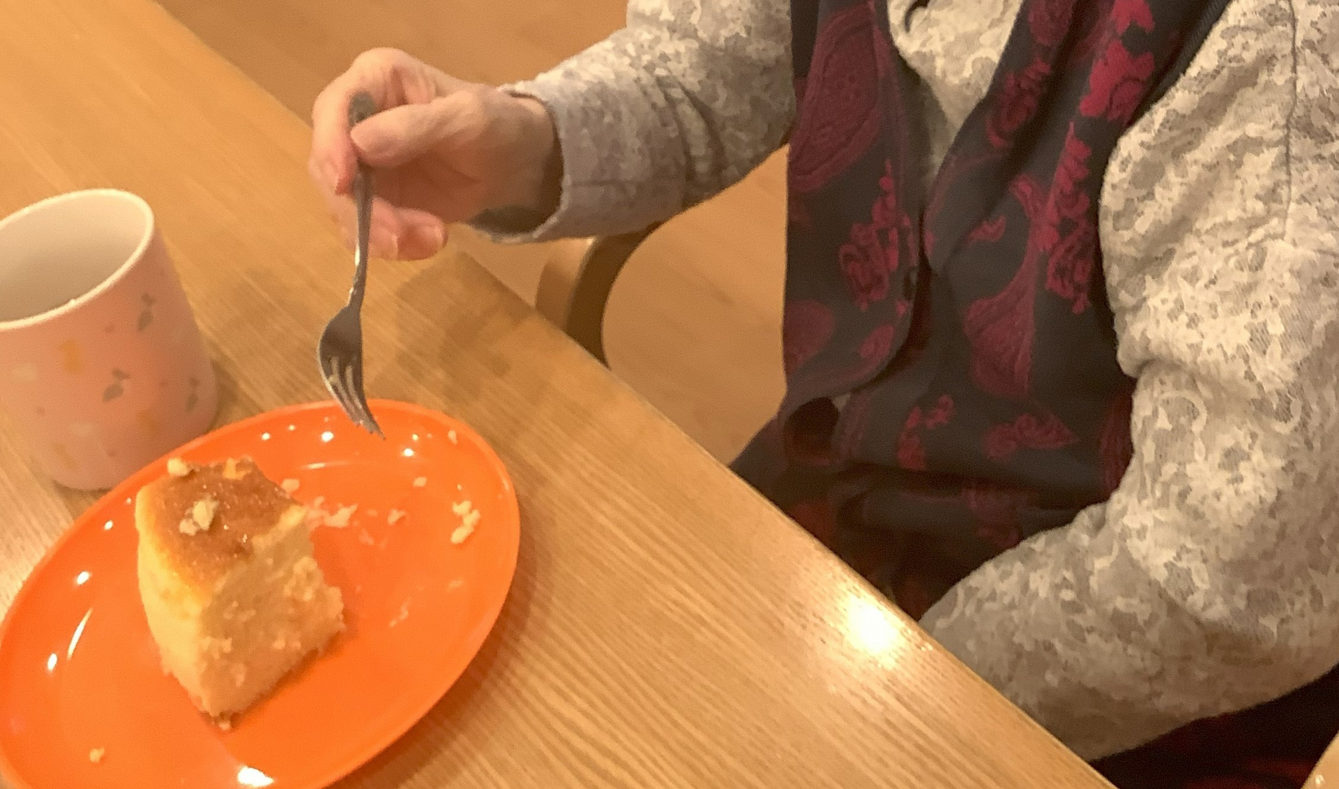次に、利用者様がケーキを召し上がっていらっしゃる様子です。