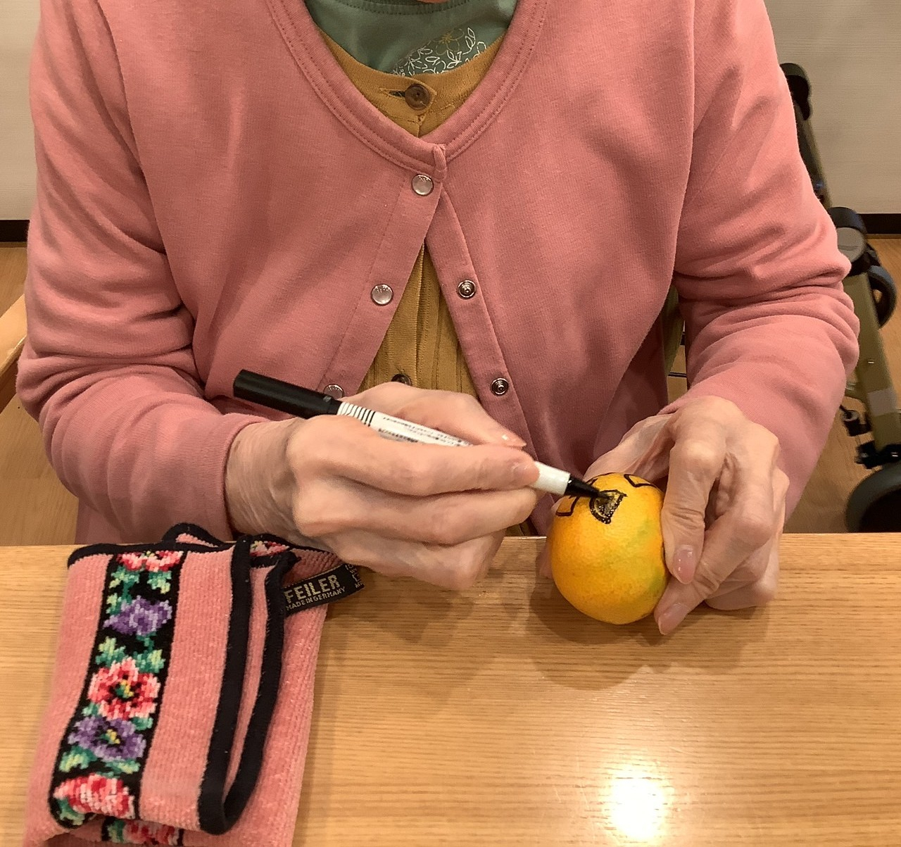 何をしているのかと言いますと、ハロウィンの時期ということもあって、みかんにハロウィン系のイラストを描いていました!