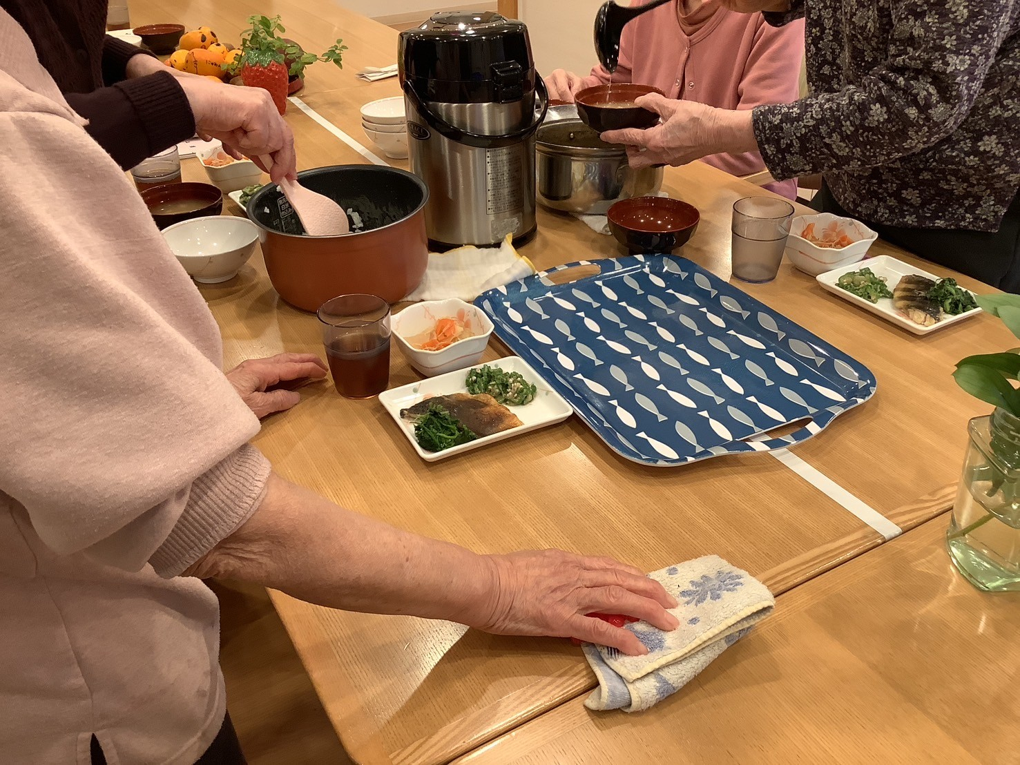 汁物と白米は、食席でご入居者様によそっていただきました(*'▽')