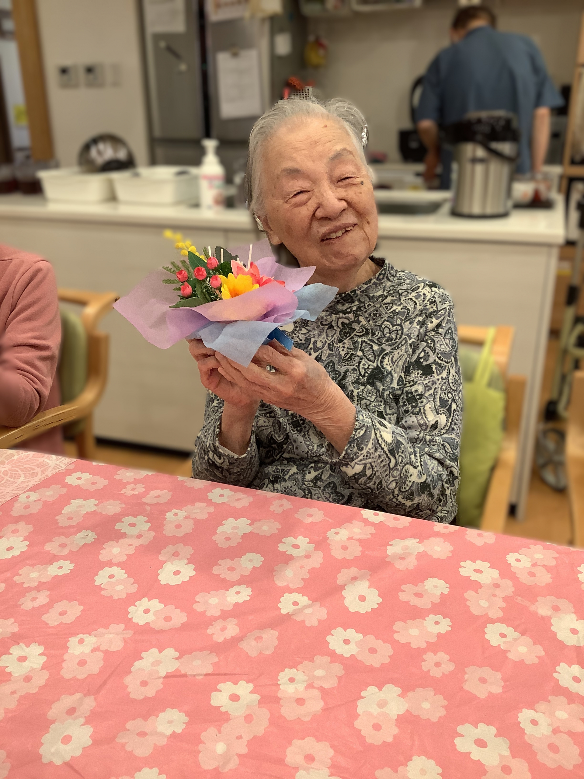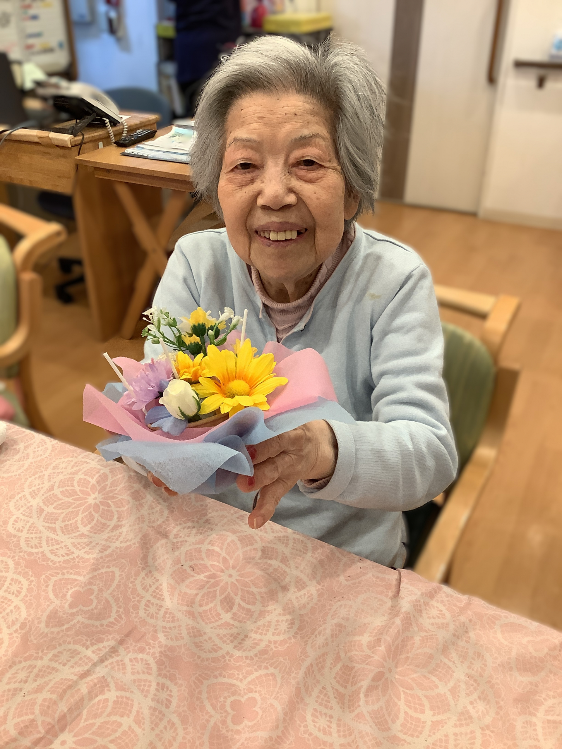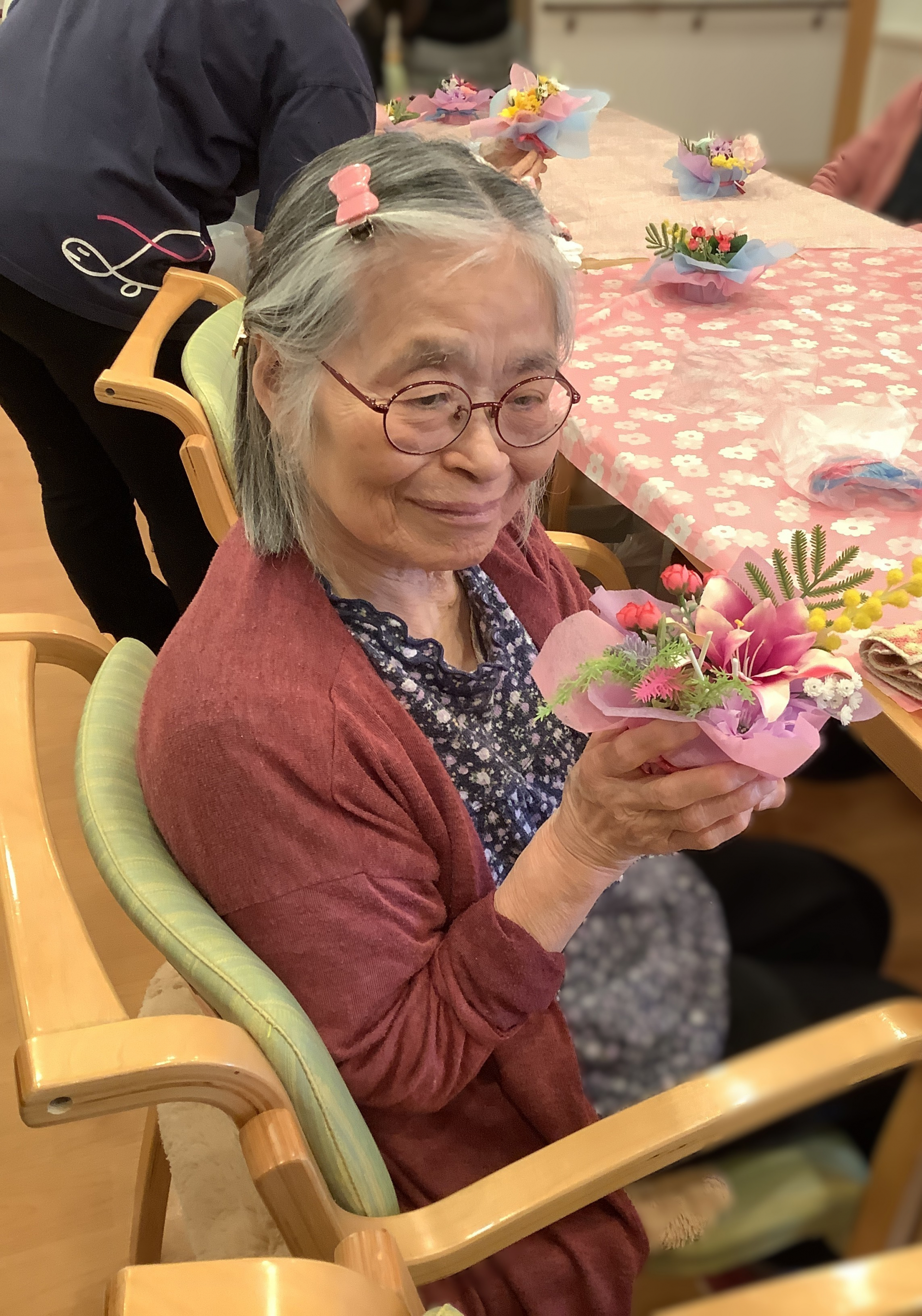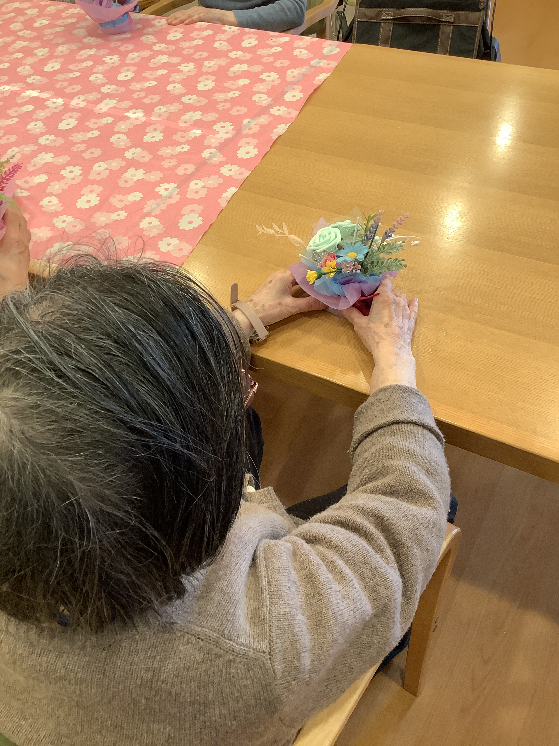 いつも来てくださる訪問美容のスタッフ様と一緒に、素敵なブーケを作りました。