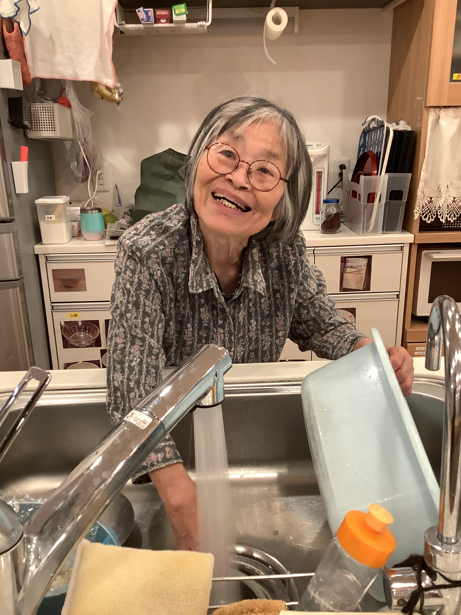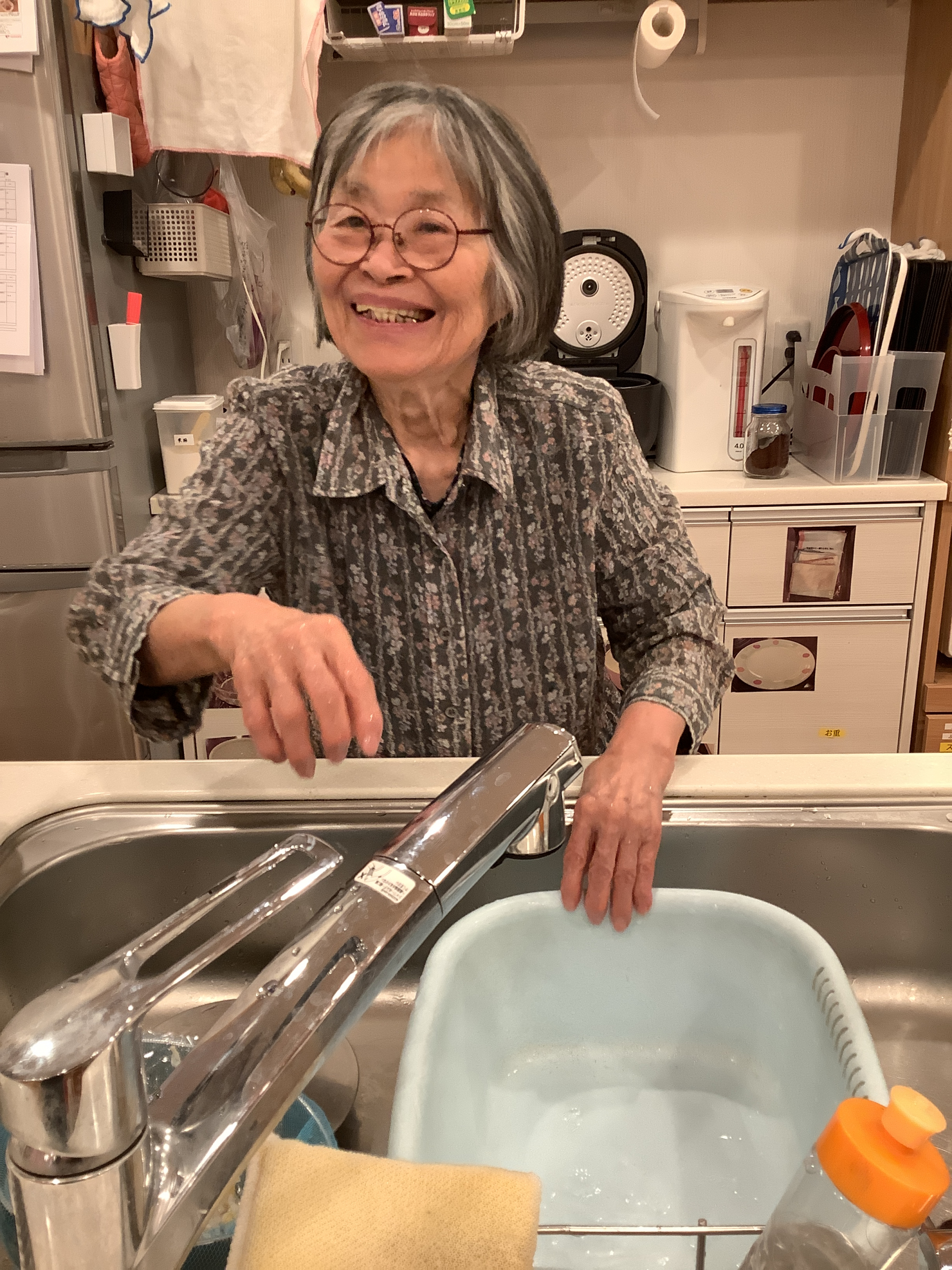 日常のご様子です。この日も朝からたくさんの食器洗いや食器拭きといった、台所仕事を手伝ってくださったご入居者様♪