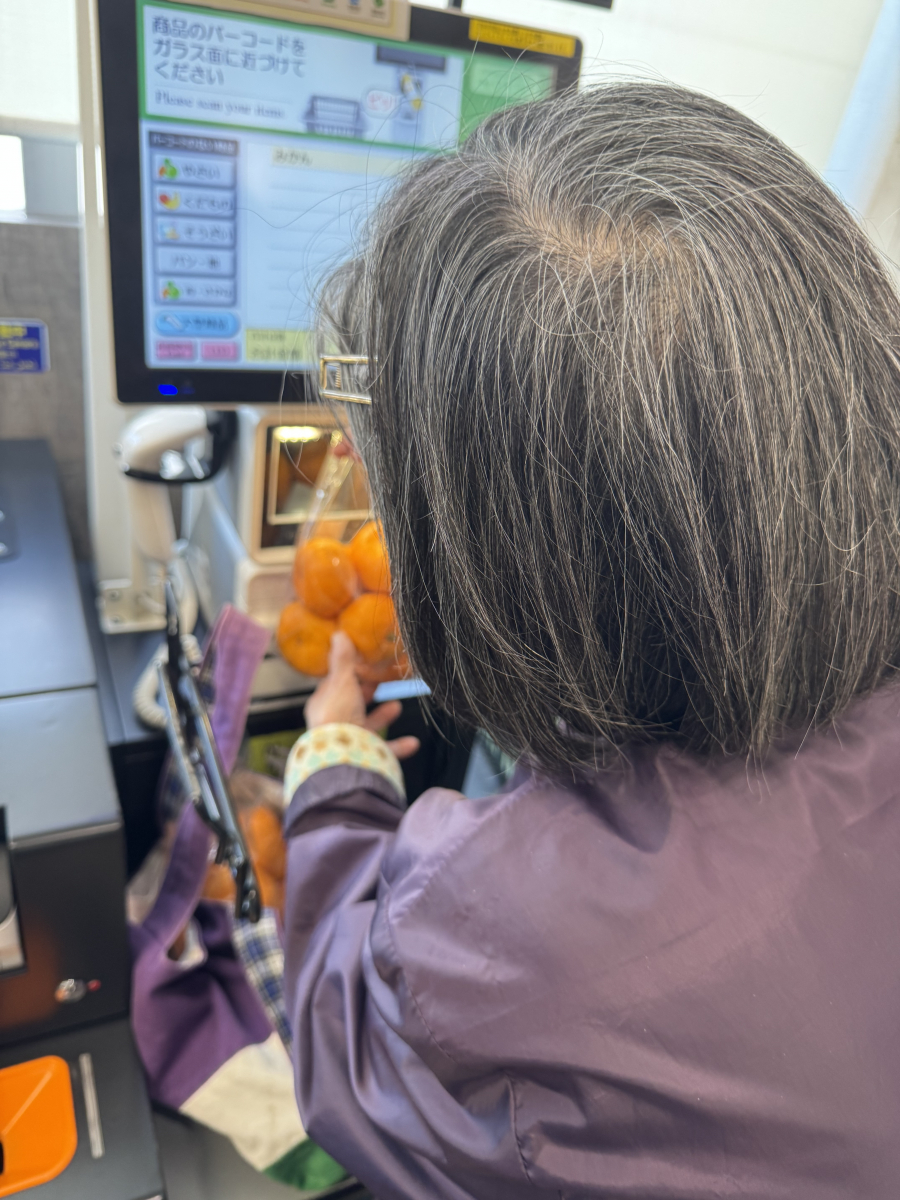 最近のスーパーはセルフレジの導入が進んでいるので、この日はご入居者様と一緒にセルフレジでお会計です!!