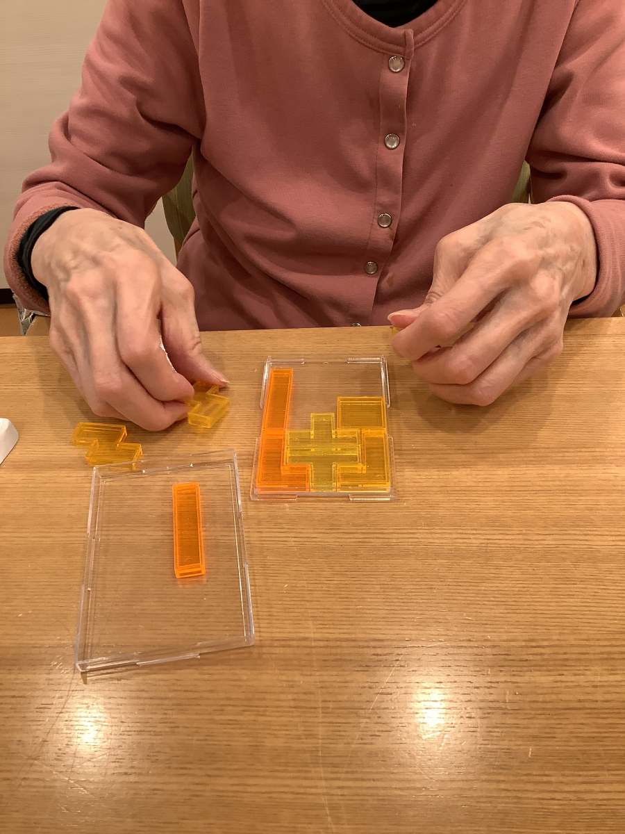夕食を食べ終えた皆さま。まだまだ遅い時間ではなかったので、脳トレが好きなご入居者様にパズルをご用意してみました(*^-^*)