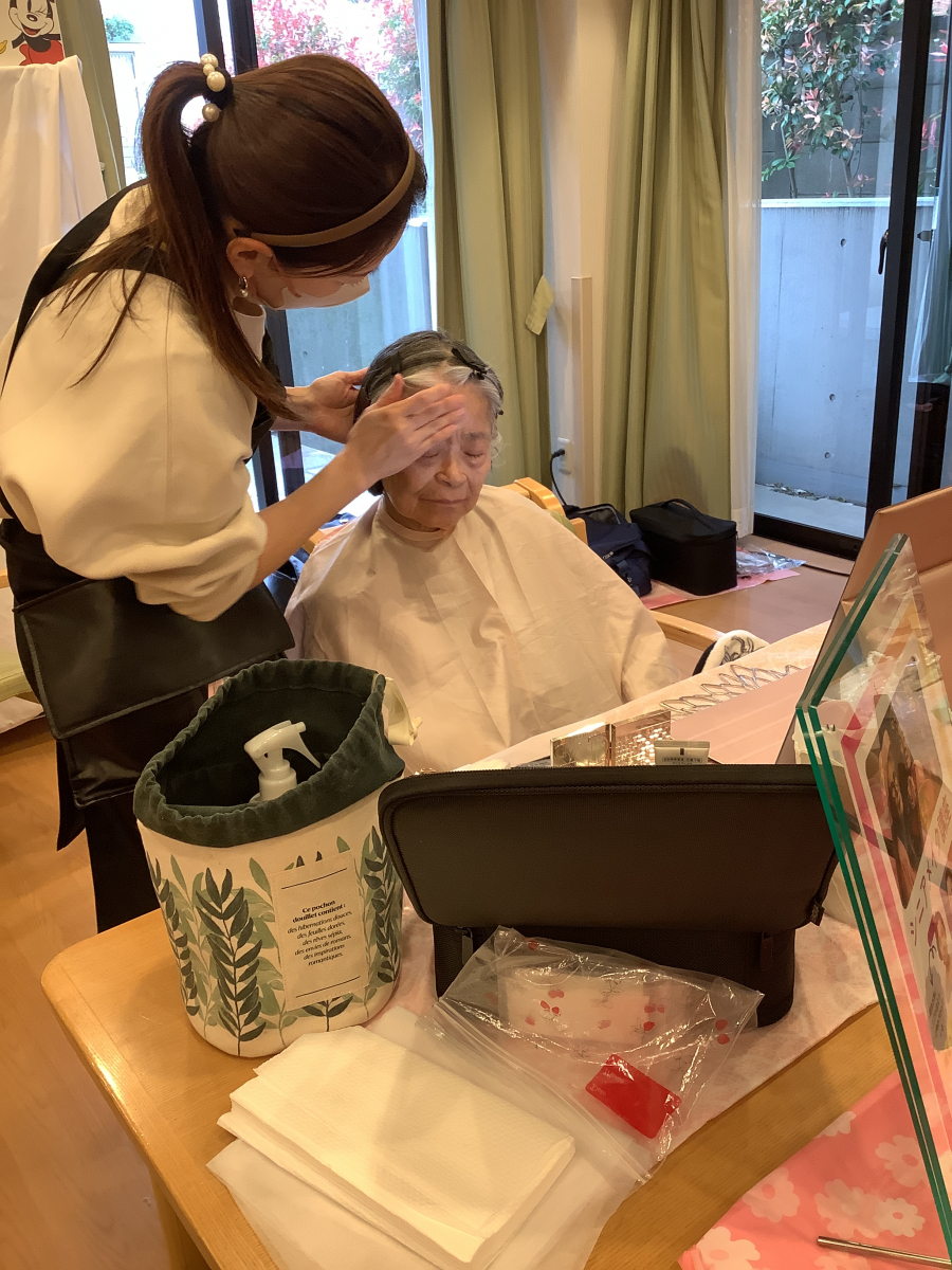 普段はお化粧をする機会がなかなかないご入居者様方ですが、女子の夢盛りだくさんのようなメイク道具をご覧になって、とても喜んでおられました!!