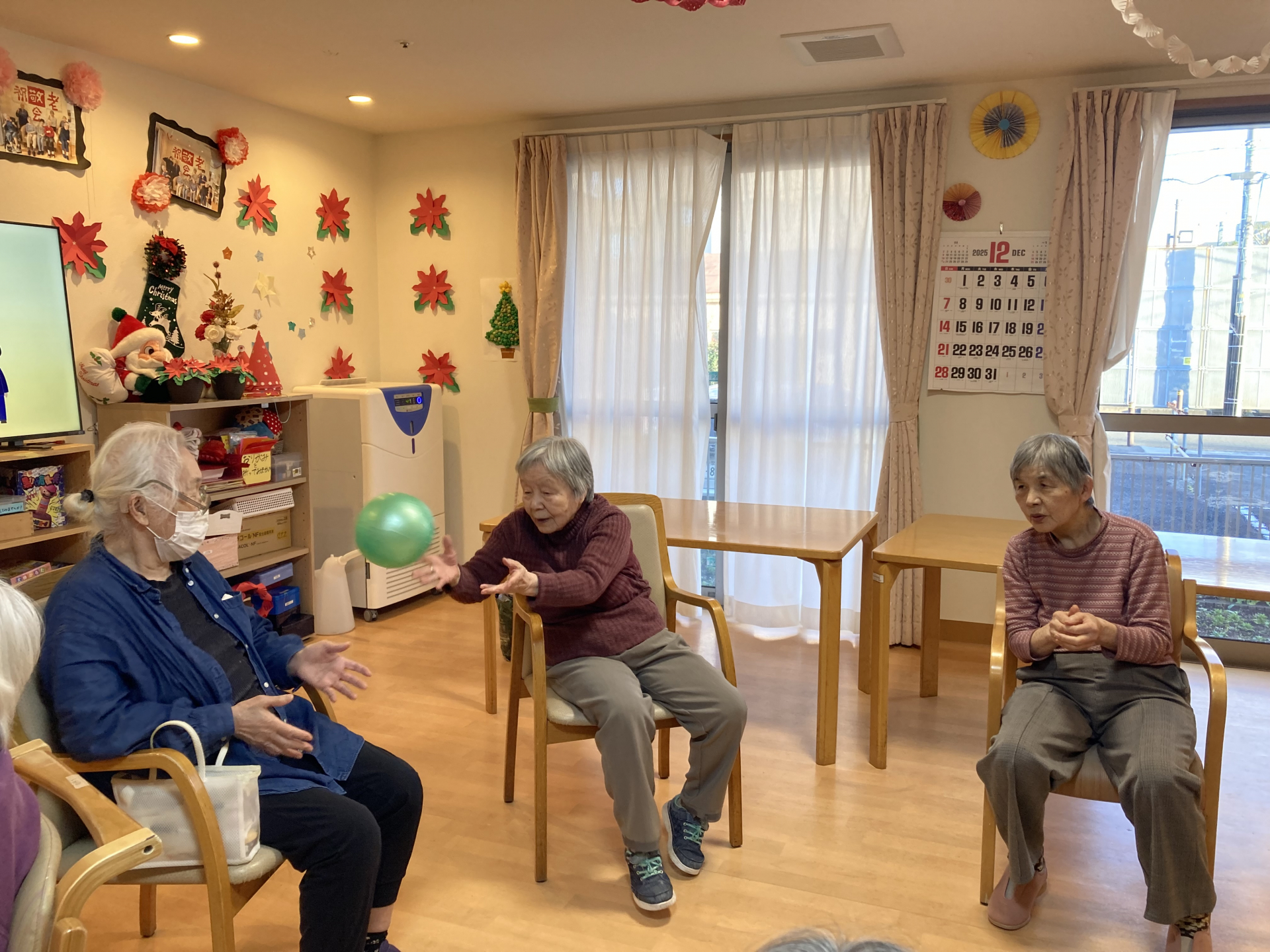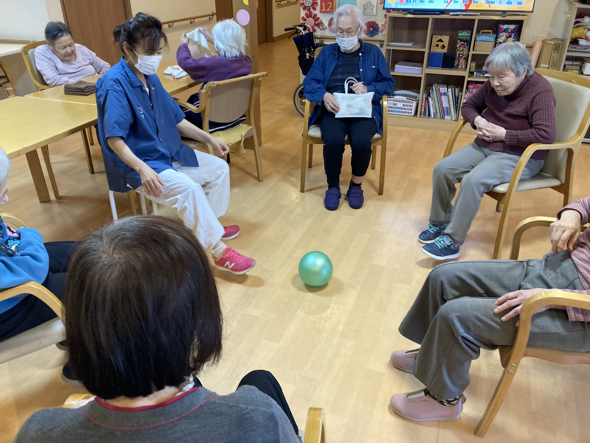 シンプルな遊びですが、いつも笑顔と笑い声があふれ、入居者の皆さまに人気の活動です。