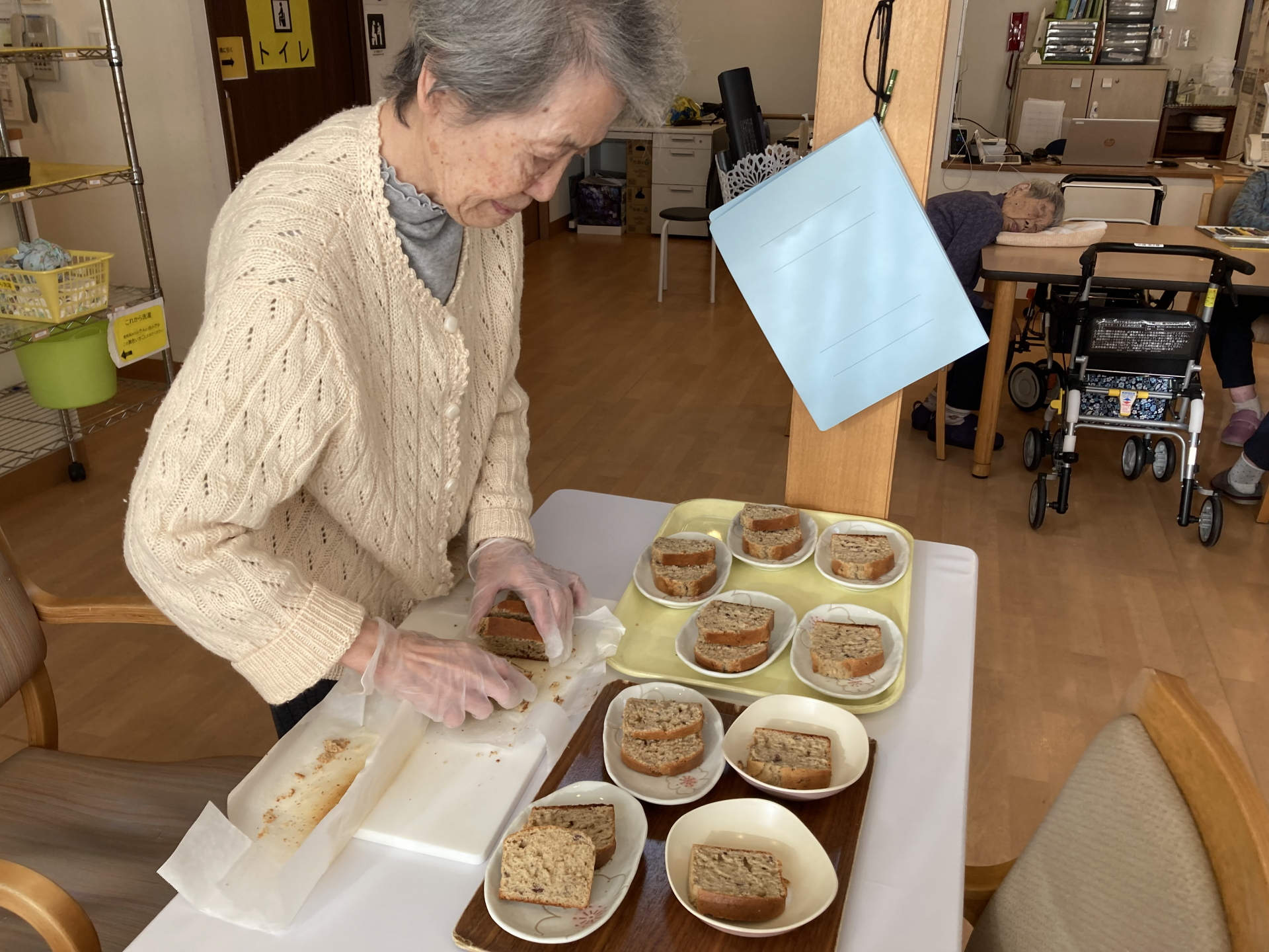 生地を混ぜたり、型に流したりと、できるところを一緒に作業しながら、和やかな時間を過ごしました。