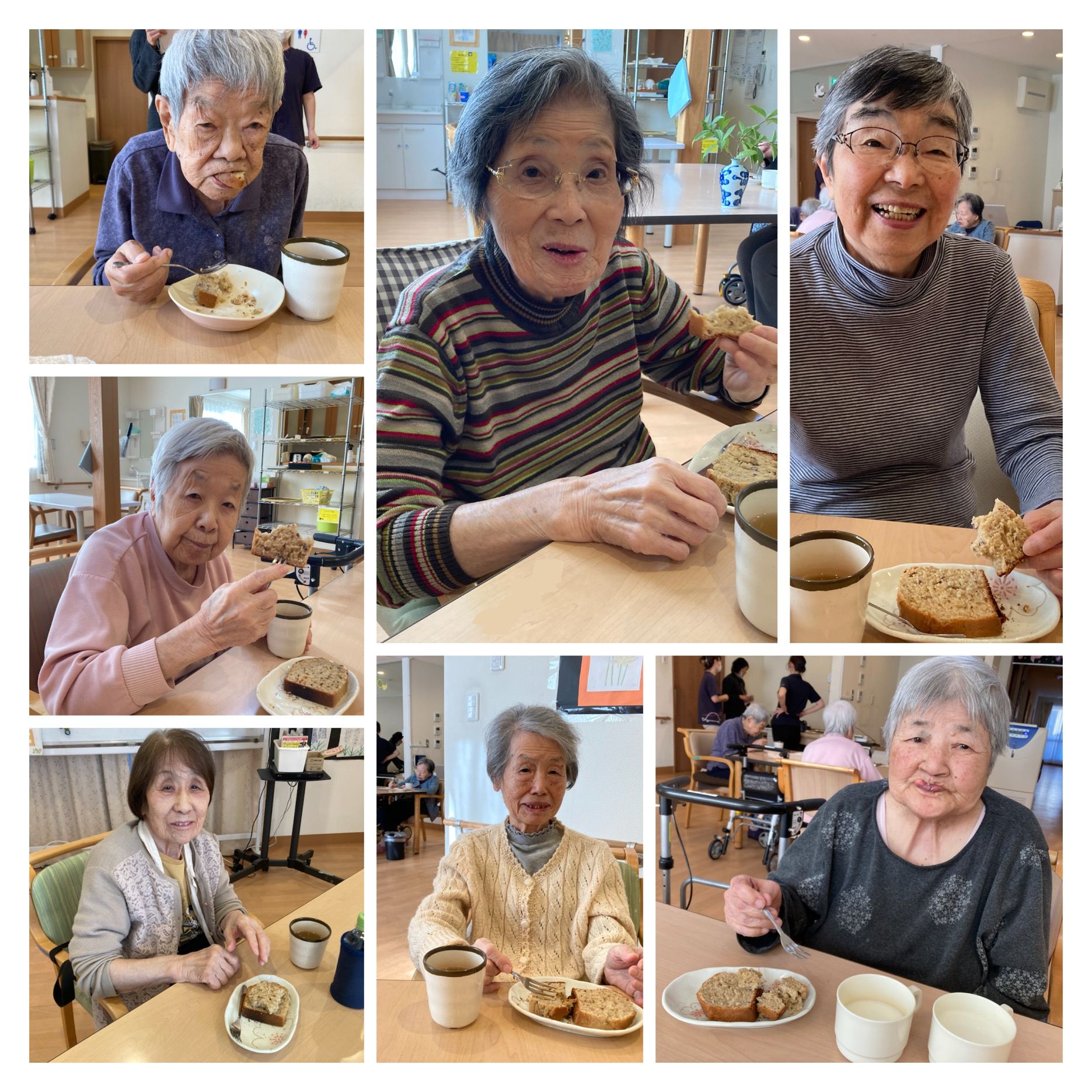 焼き上がったケーキは、ふんわりしっとり。お茶と一緒にいただき、「おいしい!」という声がたくさん聞かれました。